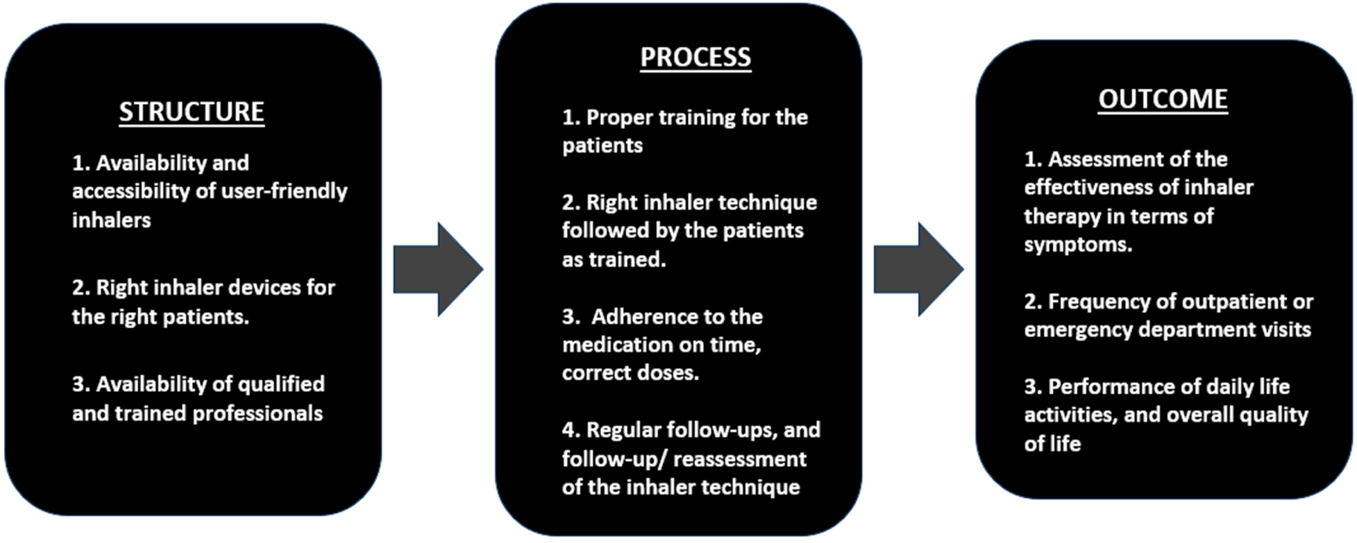 inhaler errors, Donabedian’s triad, structure, process, outcome