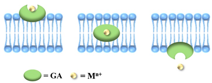 From the perspective of metal-organic supramolecular chemistry, GA contains carboxyl, hydroxyl, and other functional groups that can coordinate with metal ions. However, the spatial arrangement of the three carboxyl groups in GA is such that they are too distant from one another to form a multiradical ligand group, resulting in lower stability compared to cyclic structures formed by chelating agents like ethylenediamine and ethylenediaminetetraacetic acid (EDTA). Consequently, dissociation is more likely to occur. Conversely, this characteristic also facilitates the release of metal ions from the GA complex. GA molecules possess a hydrophobic triterpene skeleton and hydrophilic sugar groups, resulting in an amphiphilic structure that exhibits effective cell membrane penetration. The hydrophobic component can integrate into the phospholipid bilayer of the cell membrane, disrupting its structure and thereby enhancing drug permeability. This study posits that GA molecules may facilitate the translocation of Zn2+ across the cell membrane, subsequently releasing Zn2+ within the intracellular environment. This function resembles that of an ionophore, as illustrated in Figure 7. Metal-organic supramolecules can be classified into chelating agents (such as EDTA), metal shuttles (like porphyrin derivatives), and ionophores based on the type of ligands (21, 22), as detailed in Table 1. Notably, only ionophores are capable of repeatedly transporting metal ions across the membrane, thereby enhancing the intracellular concentration of these ions. In this study, it was observed that the anti-RSV efficacy was augmented when GA was combined with Zn2+, potentially linked to the ionophore-like properties of GA. However, whether GA functions as a specific zinc ionophore warrants further investigation. Notably, we conducted supplementary studies using membrane transport experiments (23). We found that GA can act on the cell membrane and promote the transmembrane transport of Zn2+, which is consistent with the characteristics of ionophores.
