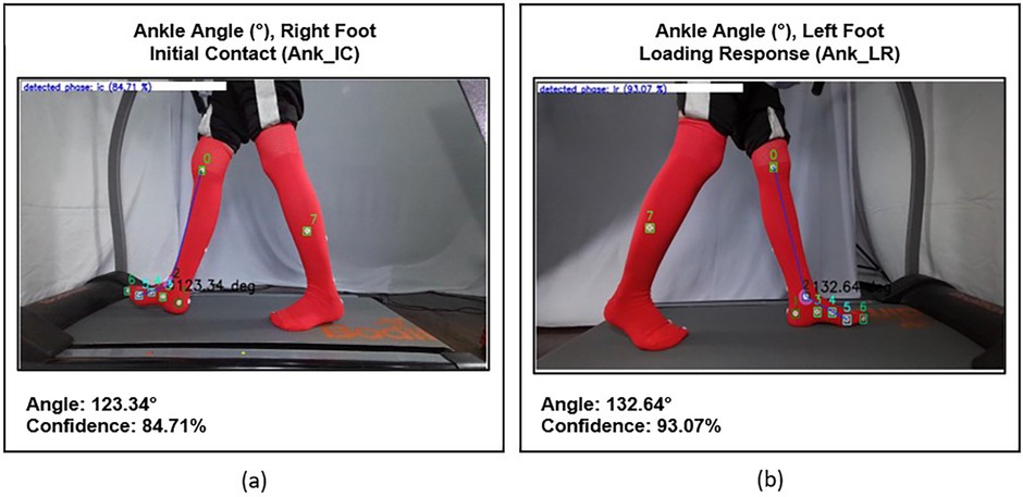 Figure 7. (a) Ankle initial contact (ANK_IC) angle of the right foot, and (b) ankle mid- loading response (ANK_LR) angle of the left foot.
