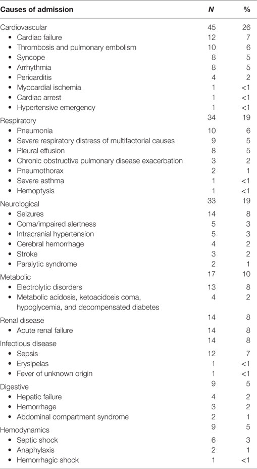 – Date and reason for ICU admission; when multiple reasons of ICU admission being found, only the initial event responsible for the physiological disturbances was considered.