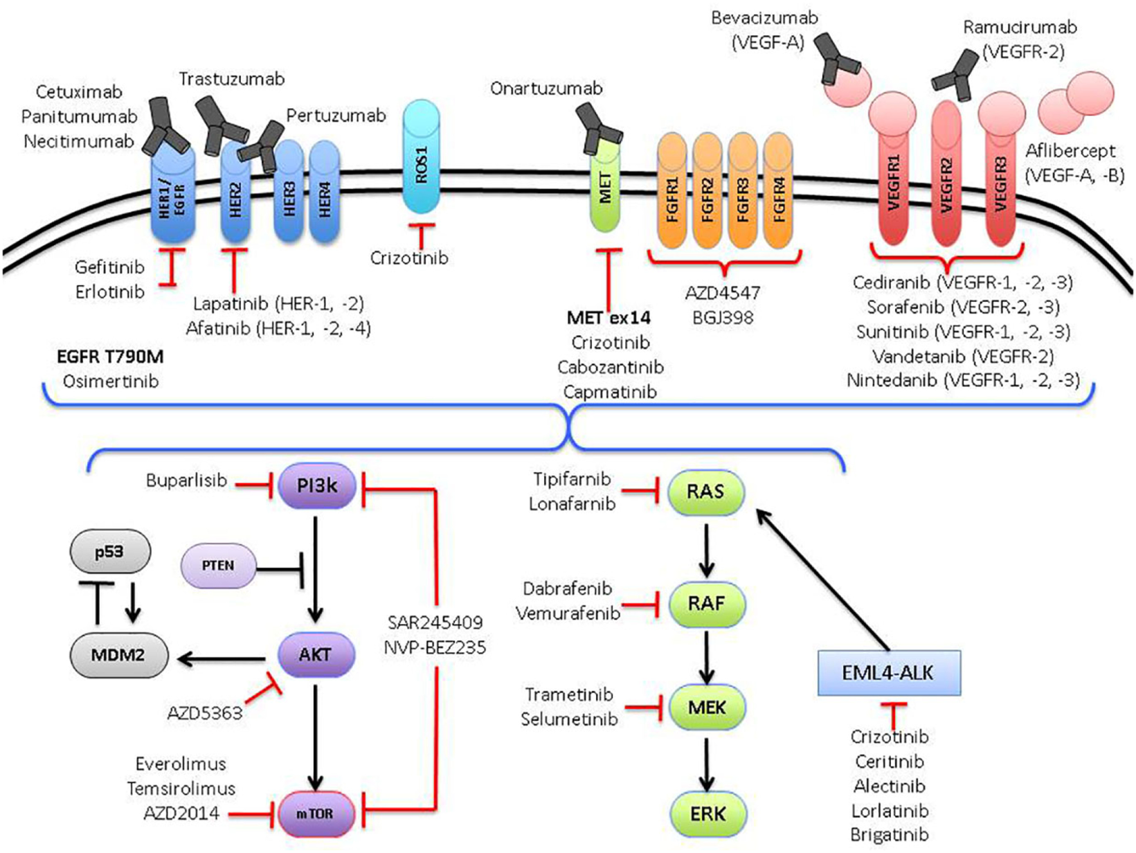 Oncogenic pathways currently being targeted in non-small cell lung cancer.
