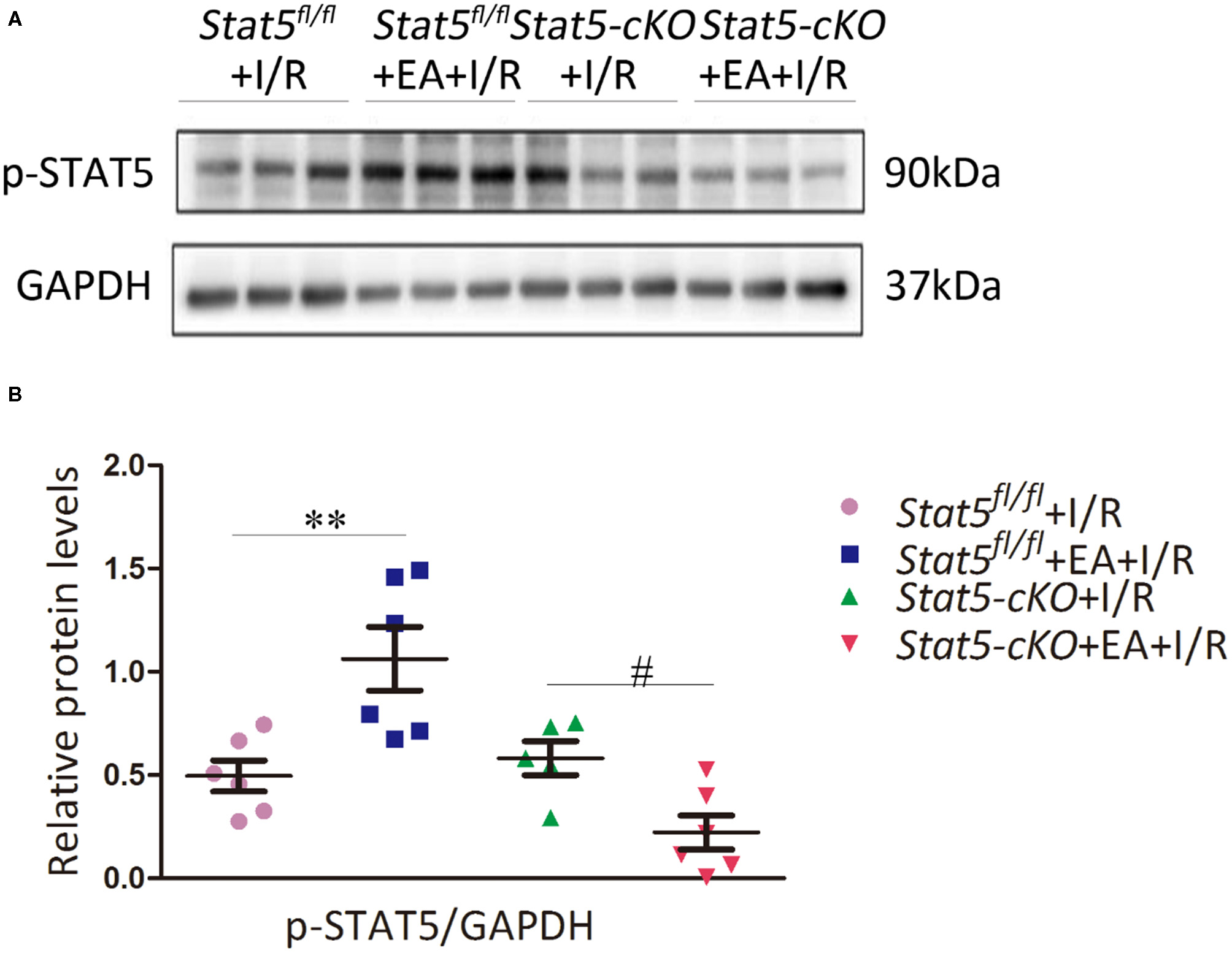 EAP Activated STAT5 in Stat5fl/fl Mice, but Not in Stat5-cKO Mice, Following Myocardial I/R Surgery