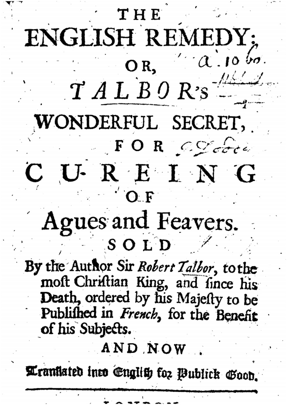 The english remedy: Talbor's wonderful secret for curing of agues and feavers (47).