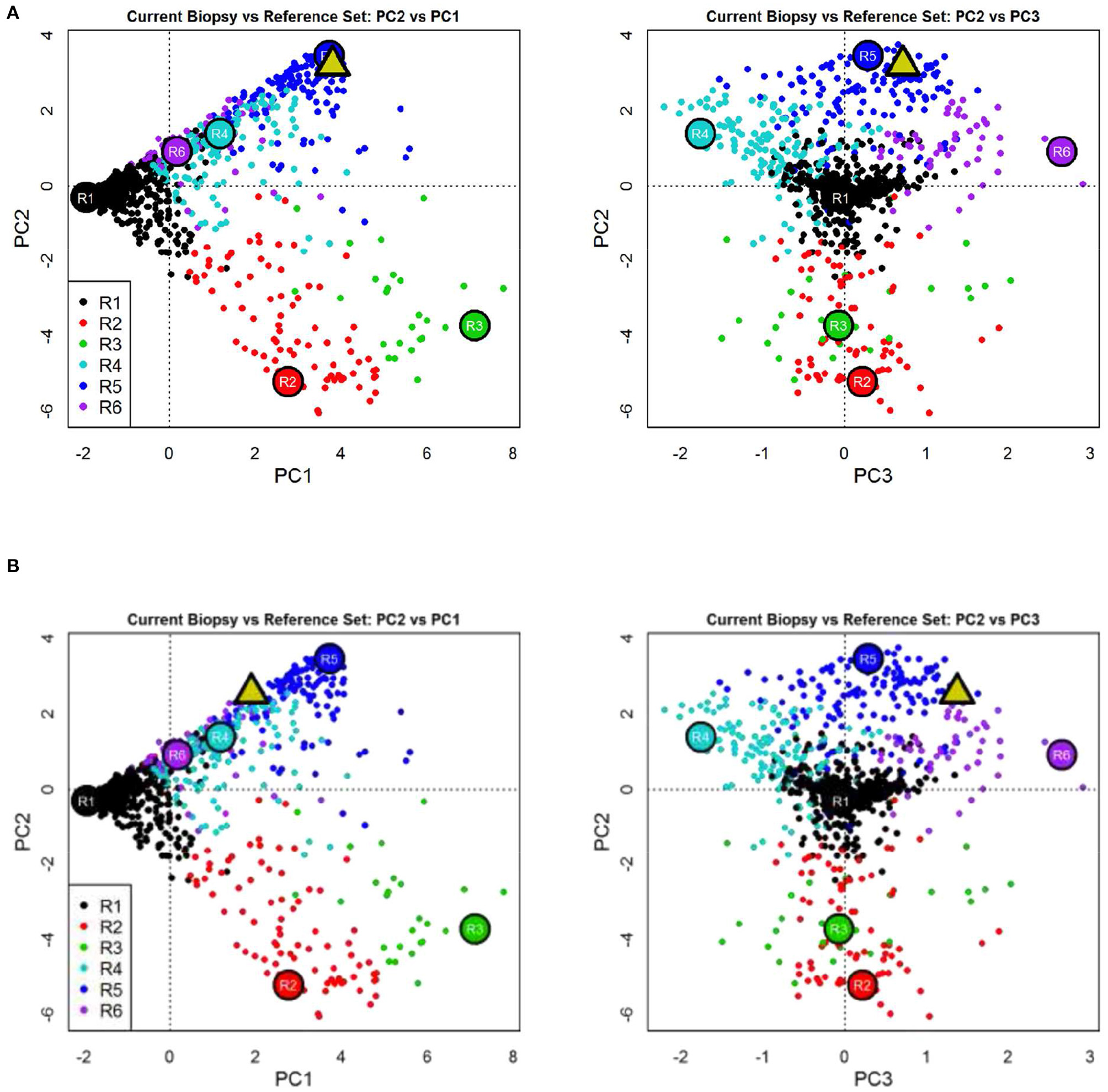 Figure 3. Molecular microscope diagnostic report (MMDx) for kidney transplant biopsy before (A) and after (B) application of mesenchymal stem cells showing fully developed antibody-mediated rejection with extensive microvascular inflammation, chronic glomerulopathy, and atrophy-fibrosis molecular features.