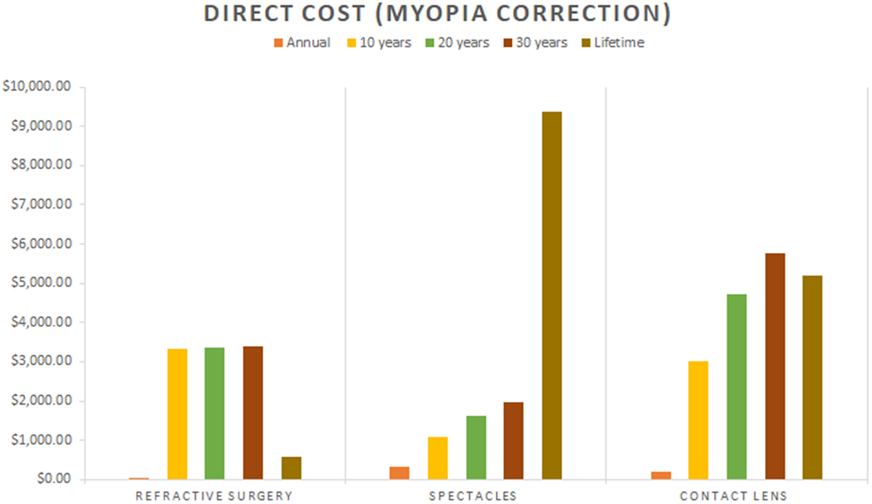 The costs for myopia correction are shown in Table 1.