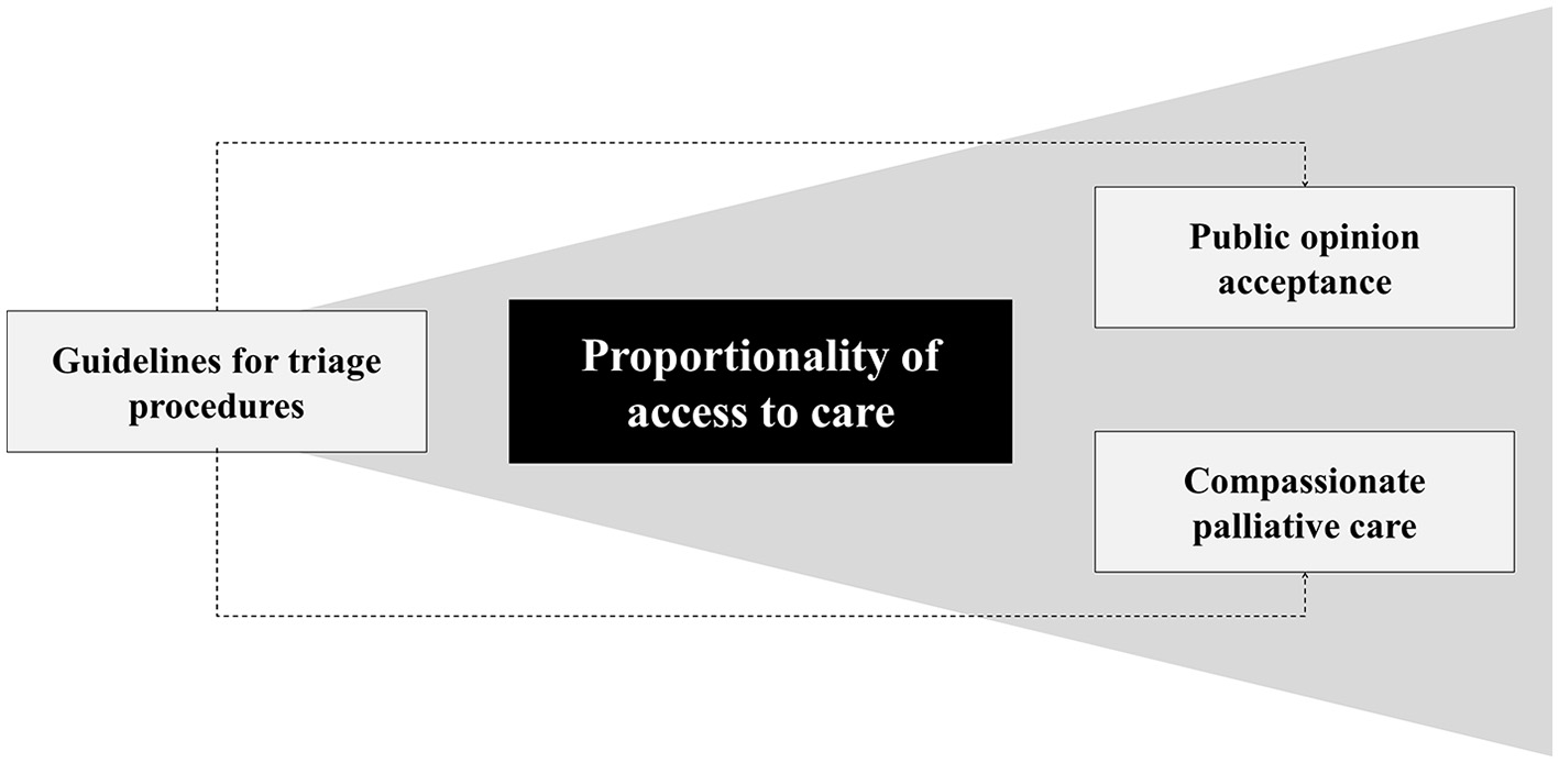 The response of health systems to the pandemic emergency imposes medical, scientific, moral, and ethical considerations on the political and health authorities involved (Figure 1). The review of existing triage procedures to meet the overwhelming demand for intensive care requires the responsible application of the principles of equity, justice, usefulness, efficiency, transparency, and participation.