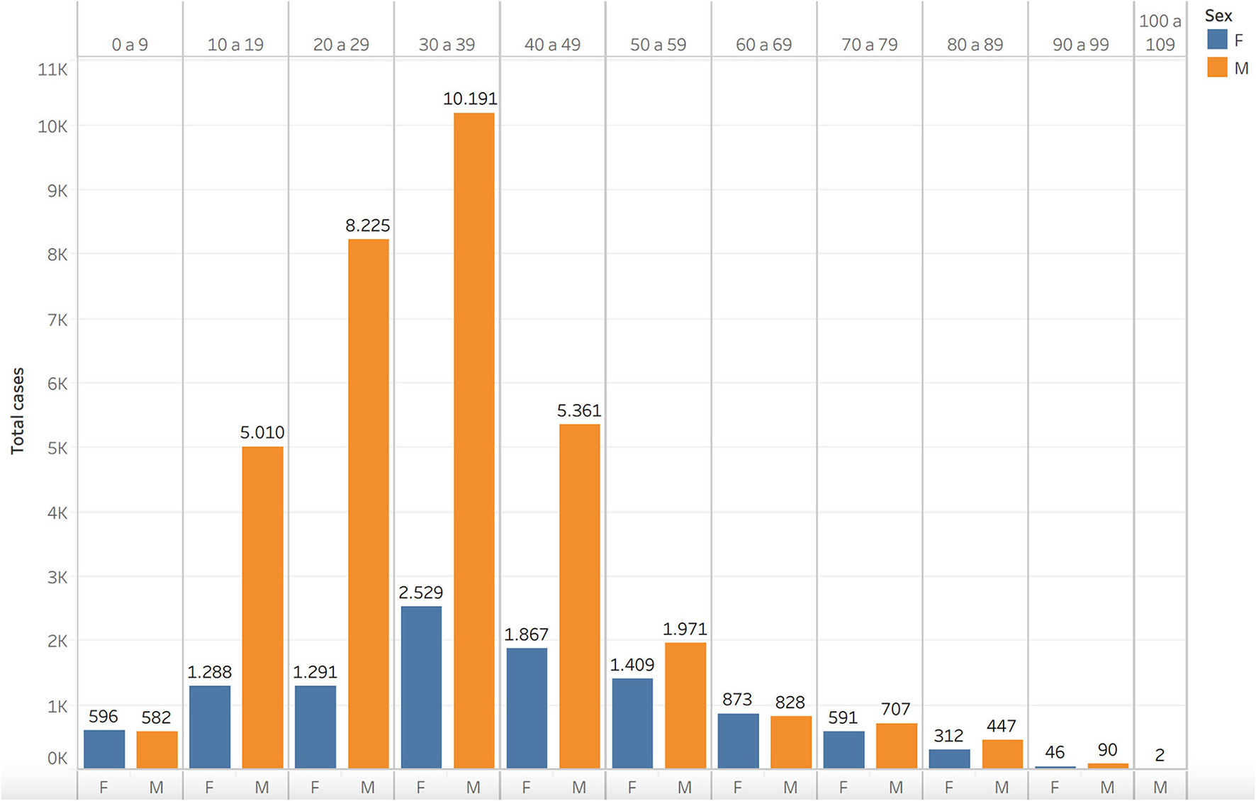 SARS-CoV-2 cases by age and sex in Colombian Army.