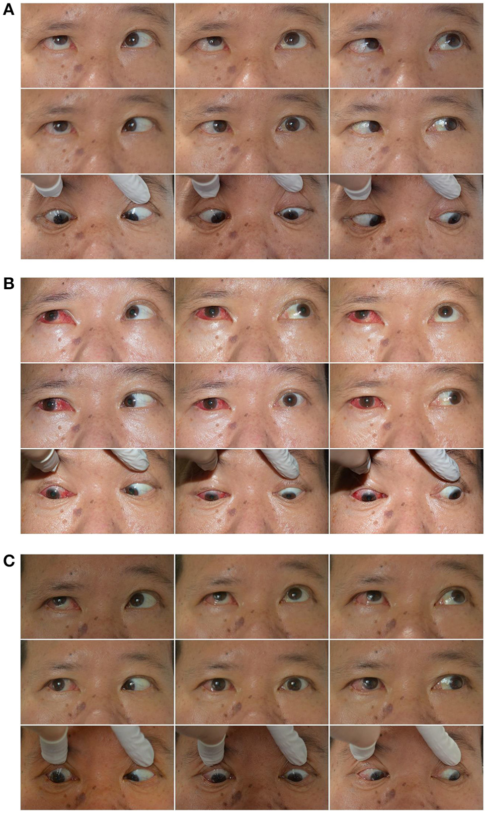 Lee (13) reported that maximal medial rectus muscle recession and lateral rectus muscle resection, i.e., the Hummelsheim procedure and the Jensen procedure, may be equally effective in the surgical treatment of complete and partial lateral rectus muscle paralysis. Bagheri (14) suggested that the horizontal rectus resection/recession procedure may also be effective in the treatment of complete abducens palsy. Since 2017, we have employed a supramaximal horizontal rectus recession–resection procedure for the treatment of complete lateral rectus muscle paralysis in our center. We found that this surgical approach proved effective, not only in correcting the horizontal deviation in the primary position but also in improving the abduction function. The purpose of this report is to review the outcomes of supramaximal horizontal rectus recession–resection surgery for complete unilateral abduction deficiency and esodeviation as resulting from an acquired complete sixth nerve palsy.