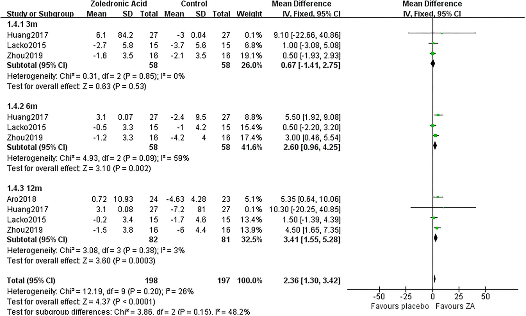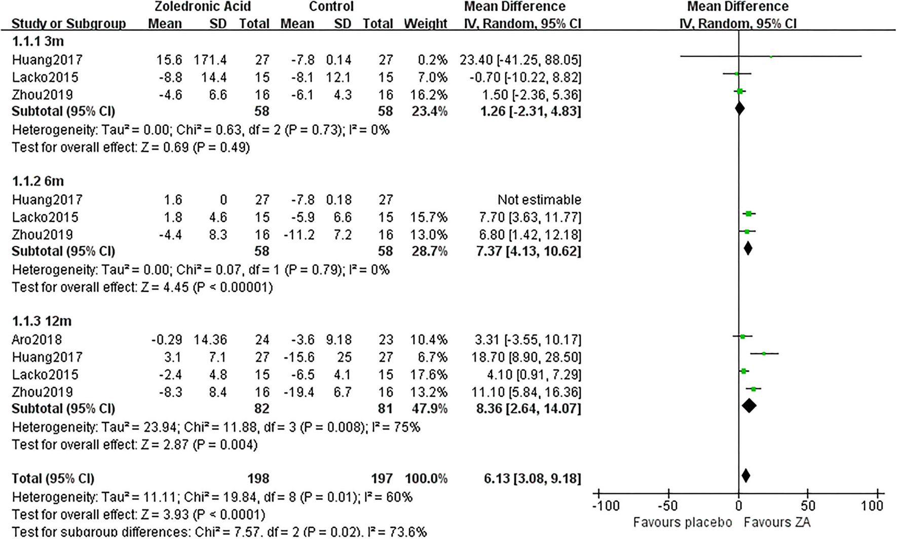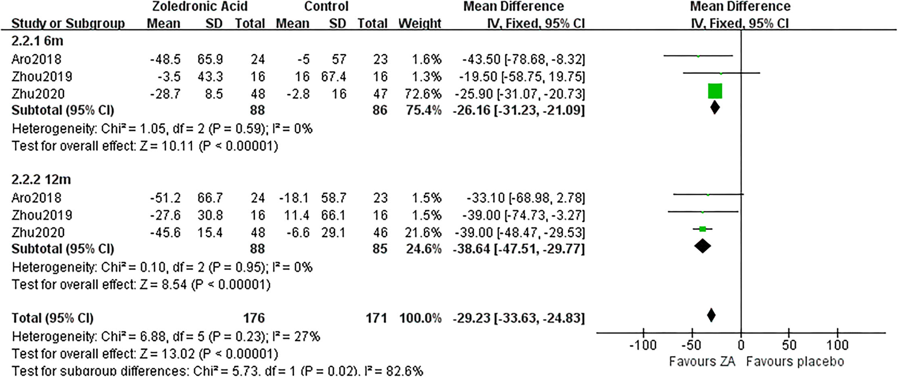 ZA, zoledronic acid; C, control group; MD, mean difference.