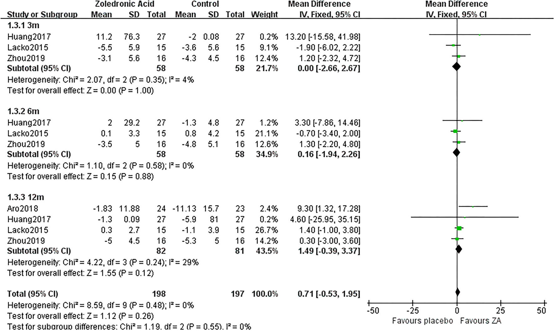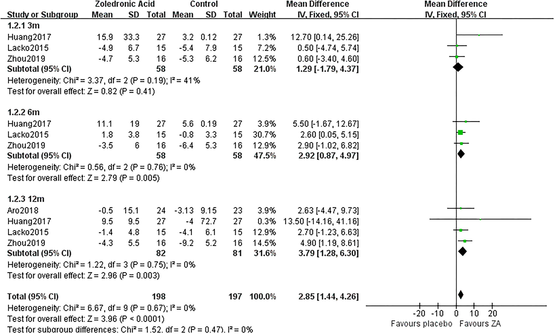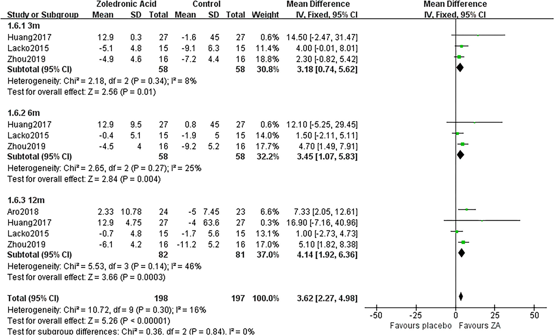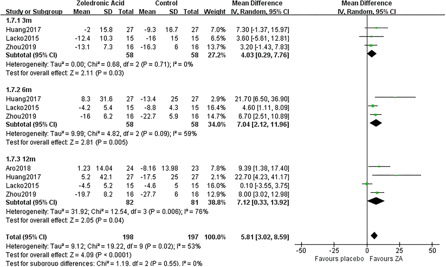 ZA, zoledronic acid; C, control group; MD, mean difference.
