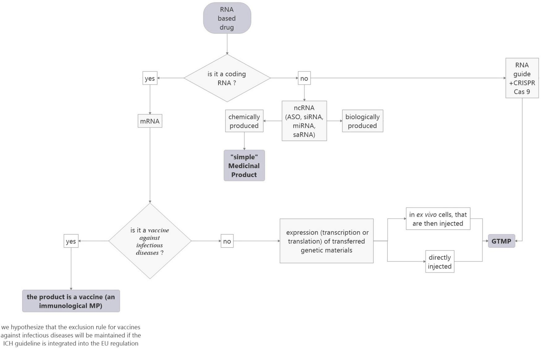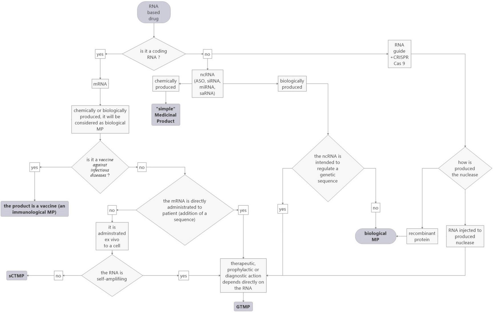 According to the EU regulation, the RNA-based drugs can be classified in various specific medicinal product statuses (see Figure 1).
