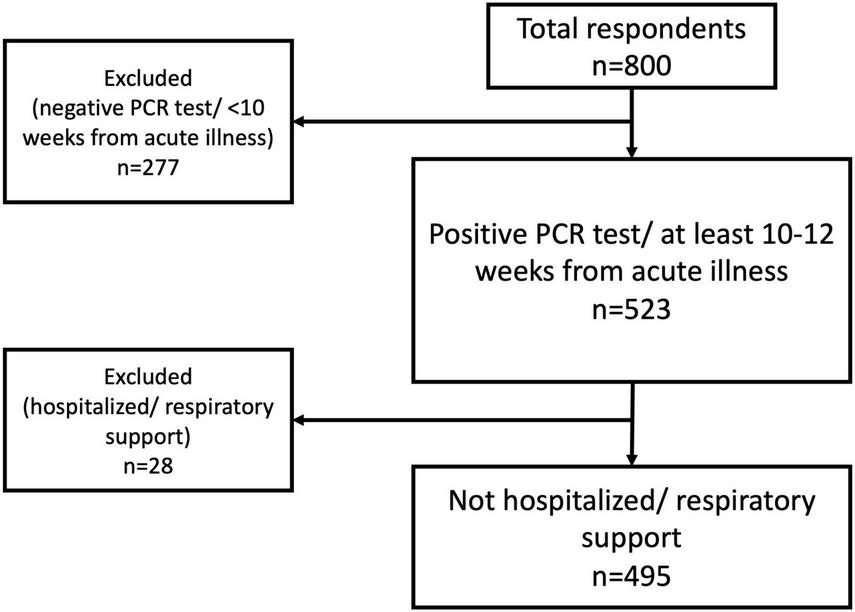A cross-sectional self-administered-online and offline-based questionnaire study involved 800 participants from all governorates of Jordan and different educational as well as governmental institutions. Inclusion criteria were previous SARS-CoV-2 infection confirmed with a positive polymerase chain reaction PCR result and currently being at least 10–12 weeks from the onset of acute illness. Patients who have been admitted to a hospital or required respiratory support of any kind were excluded from the analysis, therefore, we only analyzed outpatient survivors with history of mild to moderate illness.
