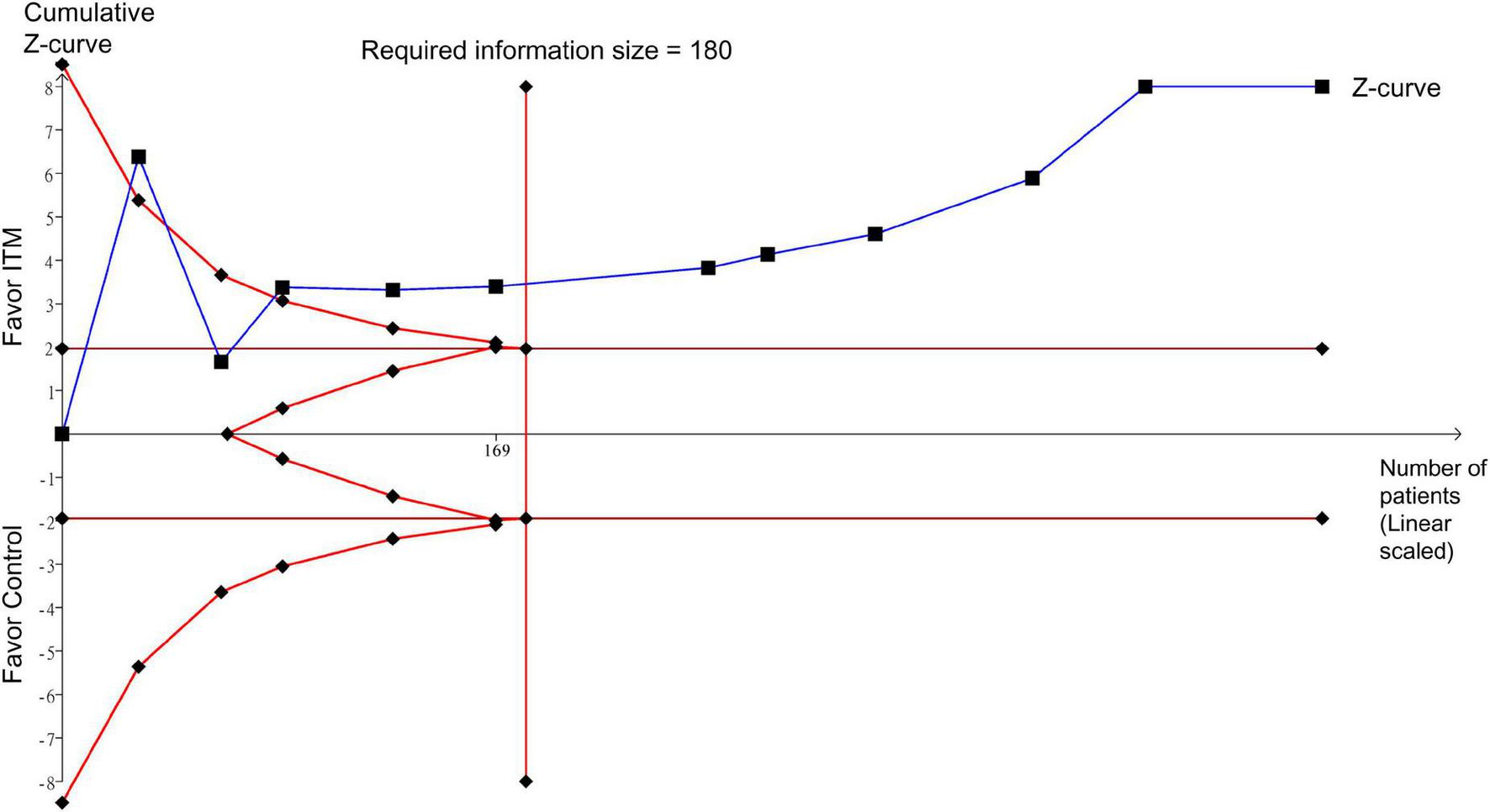 Trial sequence analysis for pain score at postoperative 24 h. ITM, intrathecal morphine.