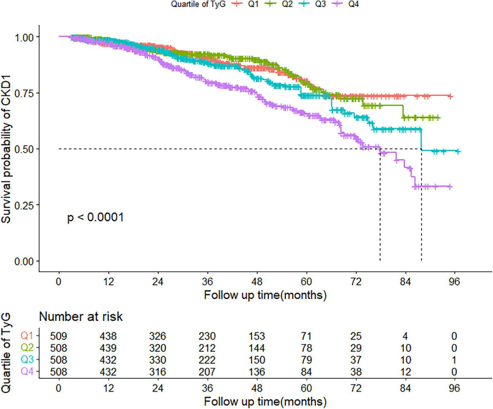 Conclusion: Higher TyG index is associated with the increased risk for CKD. Early intervention of metabolic factors may prevent the occurrence of CKD, thereby reducing the incidence of CVD and premature death.