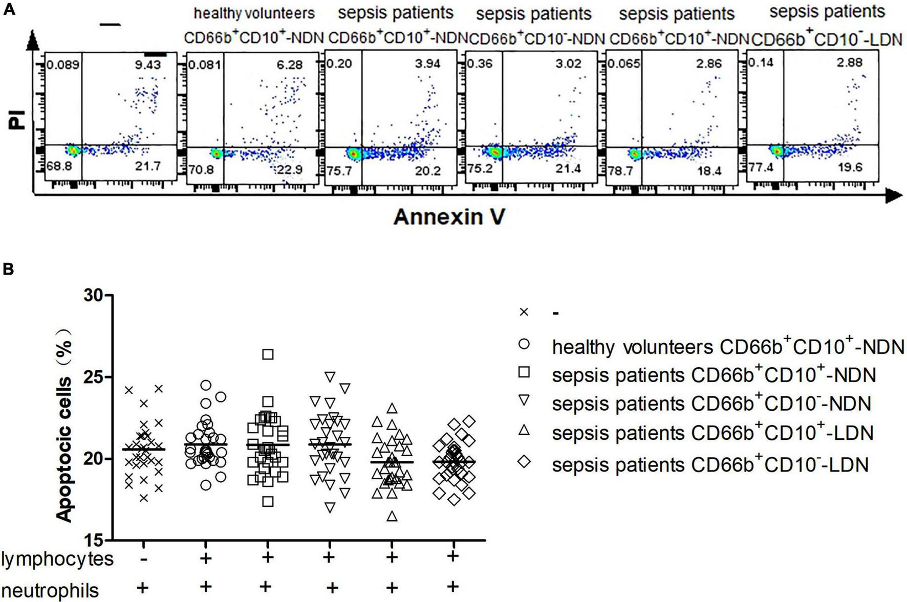 2.2.3.2. Flow cytometry analysis for CD66b+CD10+/–-LDN/NDN in healthy volunteers or sepsis patients