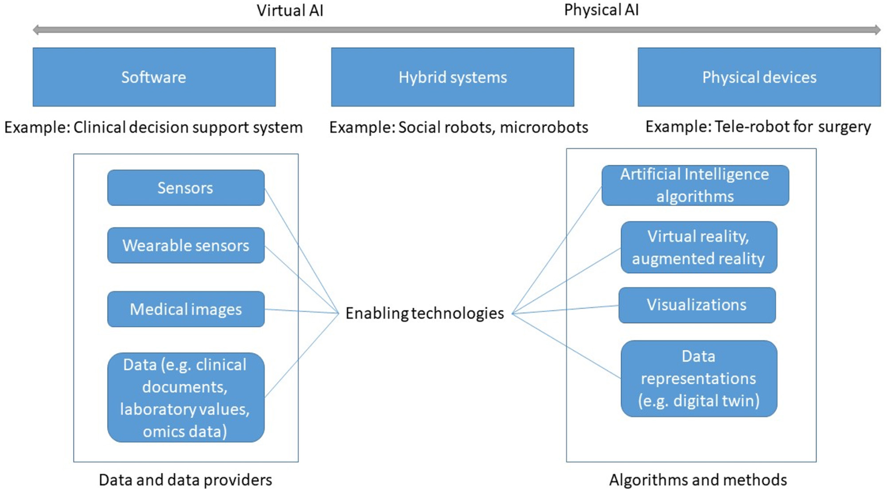 Virtual systems (relating to AI systems) range from applications such as electronic health record (EHR) systems, or text and data mining applications, to systems supporting treatment decisions.