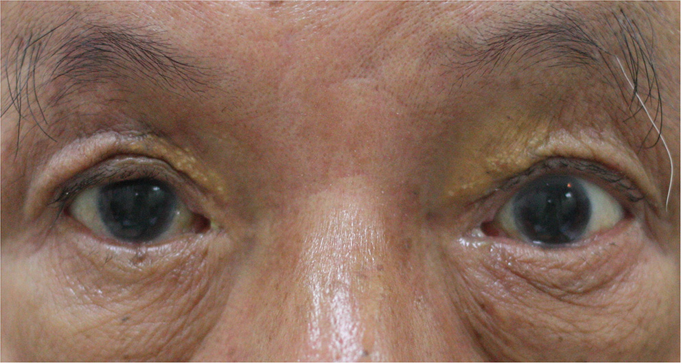 The blepharoptosis recovered with margin reflex distance 1 (MRD1) measured 2.5 mm 3 months after the injection.