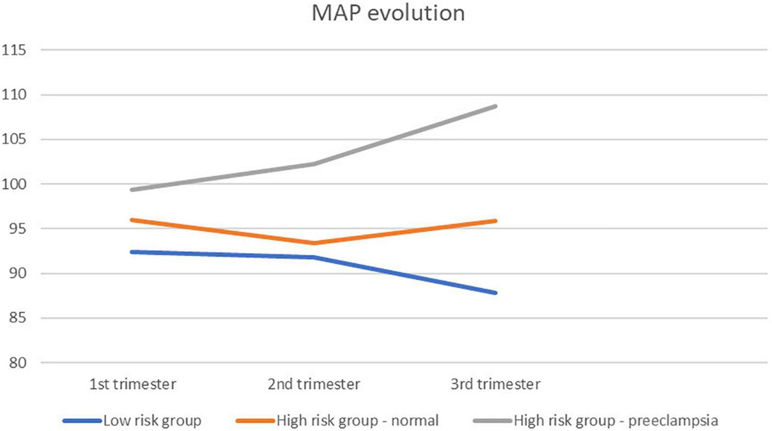 Limitations are the lack of consistently, consecutive measurements in each subject. The population is a mix of longitudinal and cross-sectional measurements for each group, in each trimester. In the high risk group, this is due to the fact that patients were mostly seen once, as a tertiary advice for the peripheral colleague gynecologists. Patients are not routinely seen twice in our center. In the normal risk group, we did had the intention to see patients four times (during pregnancy and once post-partum) but due to COVID-19 pandemic, only necessary visits were allowed. Second limitation is that we don’t have equal number of patients in every trimester. This last limitations is somewhat overcome by our higher number of patients in total.