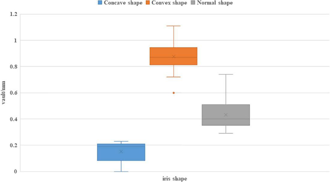 The vault distribution after ICL implantation of eyes with different iris shape.