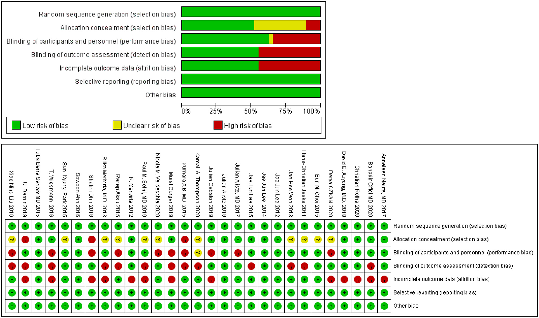 The Cochrane “risk of bias” tool was used to evaluate the methodological quality of the selected articles (21).
