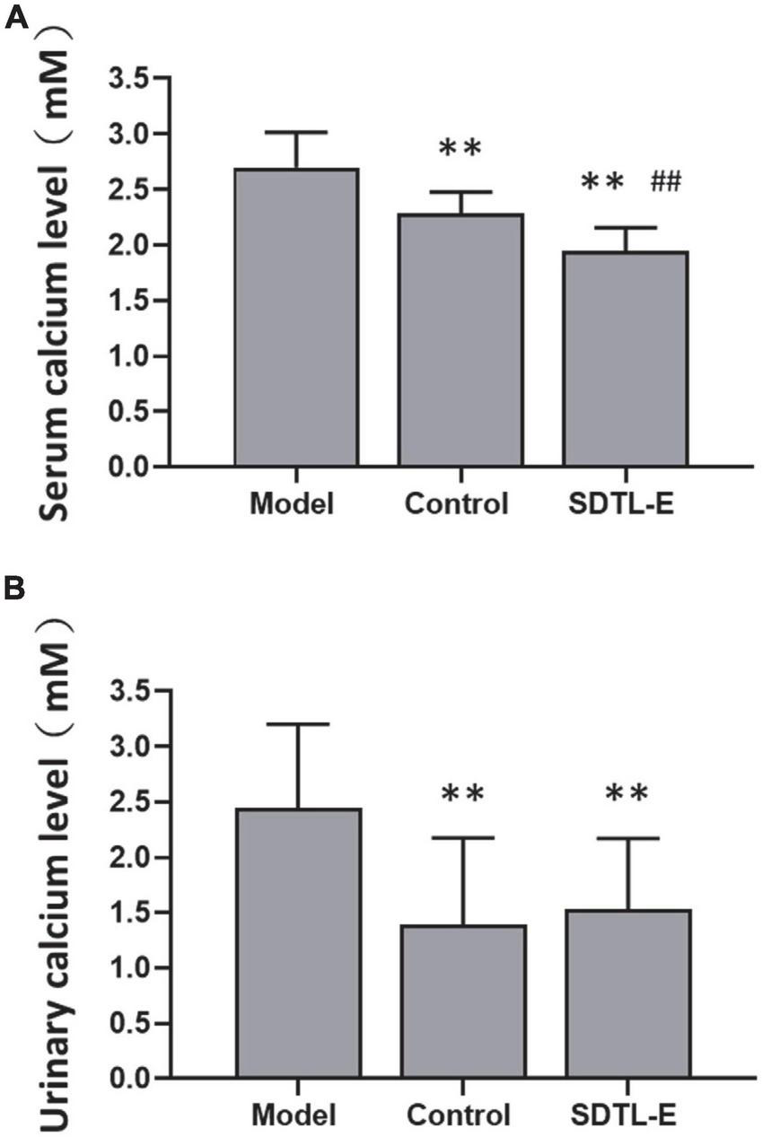 SDTL-E treatment reduced serum and urinary calcium ion levels of ovariectomized-induced osteoporosis rats