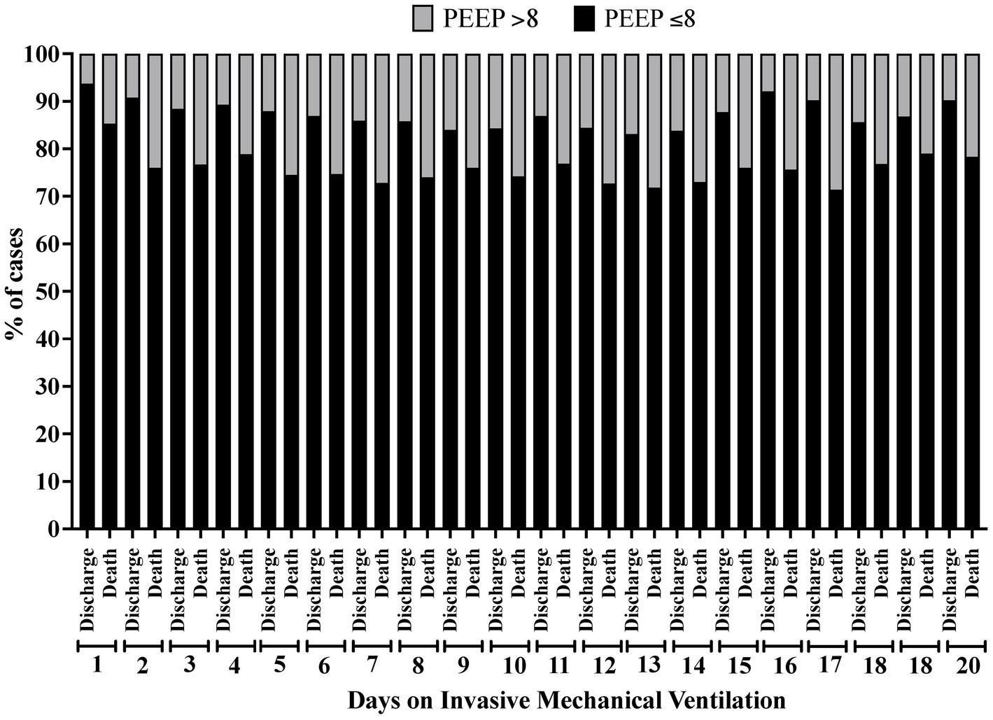 3.3. Risk of death associated with PEEP and PaO2