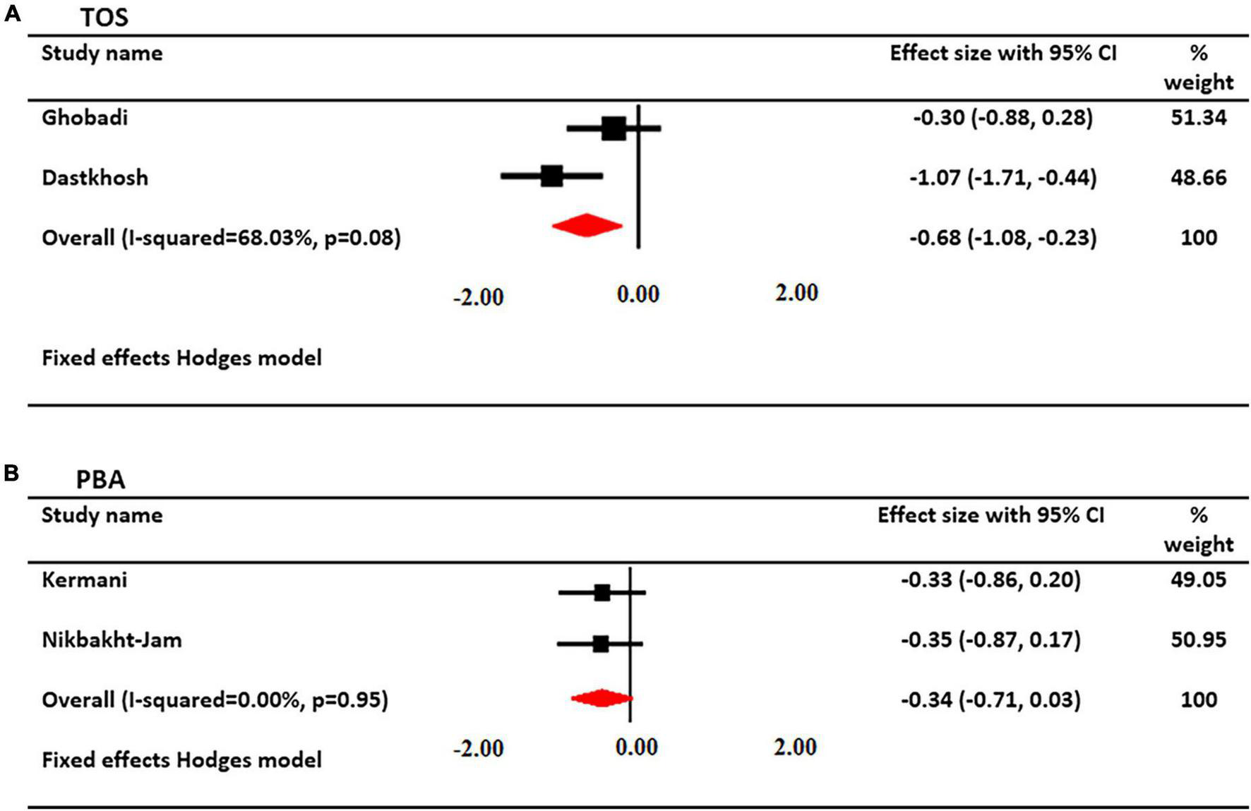 Results were extracted as mean ± standard deviation (SD). To calculate the standard mean difference (SMD), converted the reported results as a confidence interval, standard error (SE), minimum and maximum values, and quadratic range (IQR) to SD. Used comprehensive Meta-Analysis software version 2 and the random-effects model to analyze the results and defined statistical significance at p < 0.05.