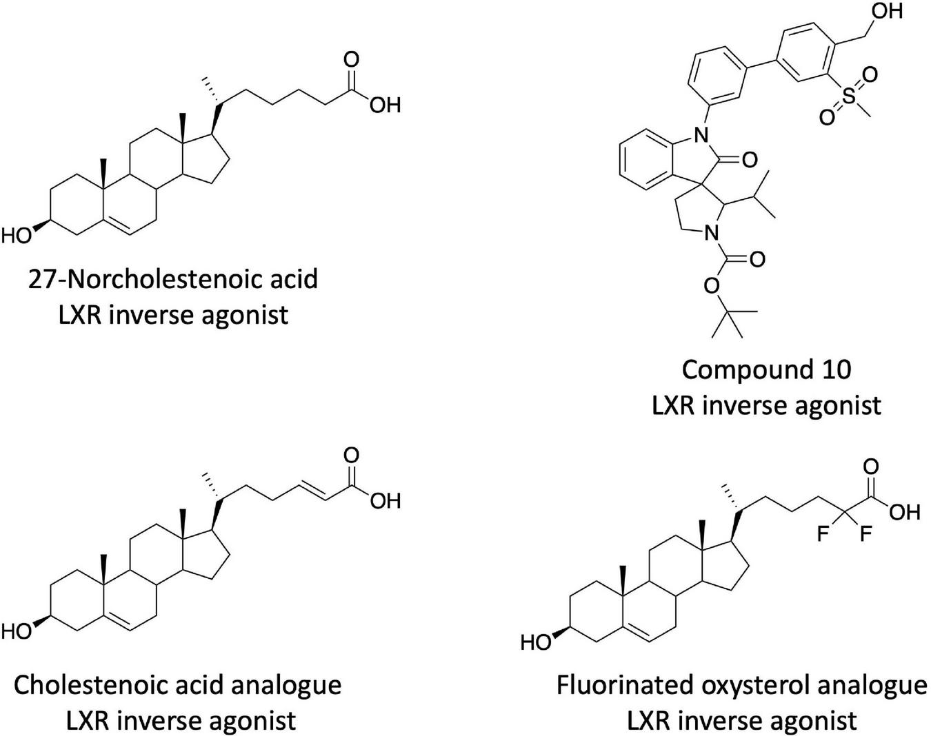 Alvarez L Dansey M Ogara M Pena C Houtman R Veleiro A et al Cholestenoic acid analogues as inverse agonists of the liver X receptors. J Steroid Biochem Mol Biol. (2020) 199:105585. 10.1016/j.jsbmb.2020.105585