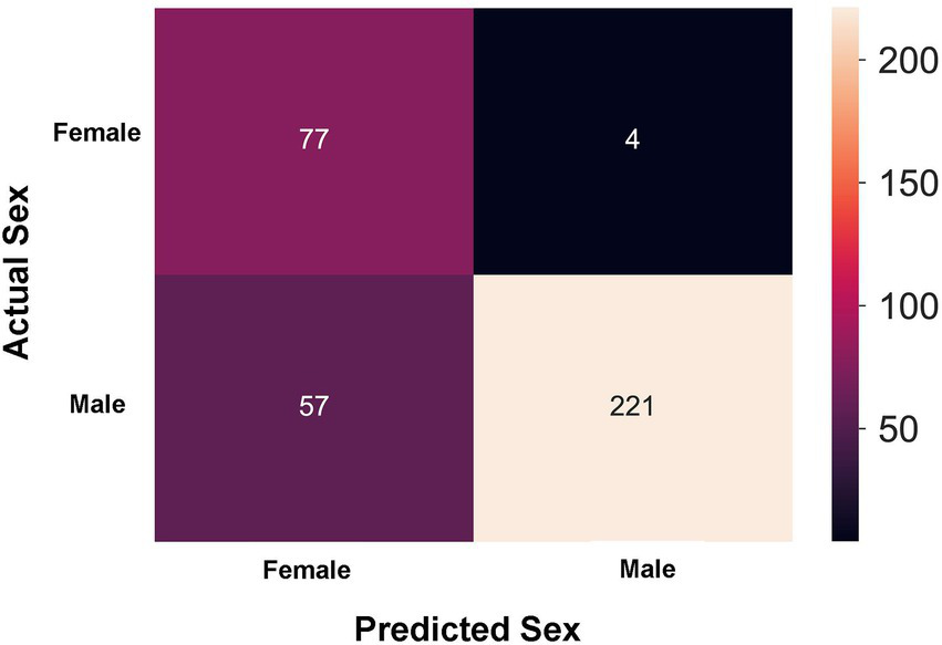Statistical analyses were carried out by SPSS 22.0. The baseline characteristics of the study population were described. According to our previous studies, the data were analyzed (21, 25, 26, 29, 30). In brief, mean ± standard deviation (SD) was used to present normally distributed data. Median and interquartile ranges (IQR) were performed to present non-normally distributed data. Categorical data were expressed as frequencies. Chi-square was used to analyze categorical variables. Continuous variables with normal distribution were analyzed by the Student t-test. Ordinal variables and continuous variables without normal distribution were analyzed by the Mann–Whitney U-test. The data distribution was examined by the Kolmogorov–Smirnov test. Variables with significant differences (p < 0.05) associated with sex by univariate analysis were included in the binary logistic regression model. The Spearman rank method was performed to analyze correlations. A threshold of p < 0.05 was considered to be significant. In addition, the nomogram, calibration curve, ROC curve, and DCA curve were established by R version 4.1.2 (22).