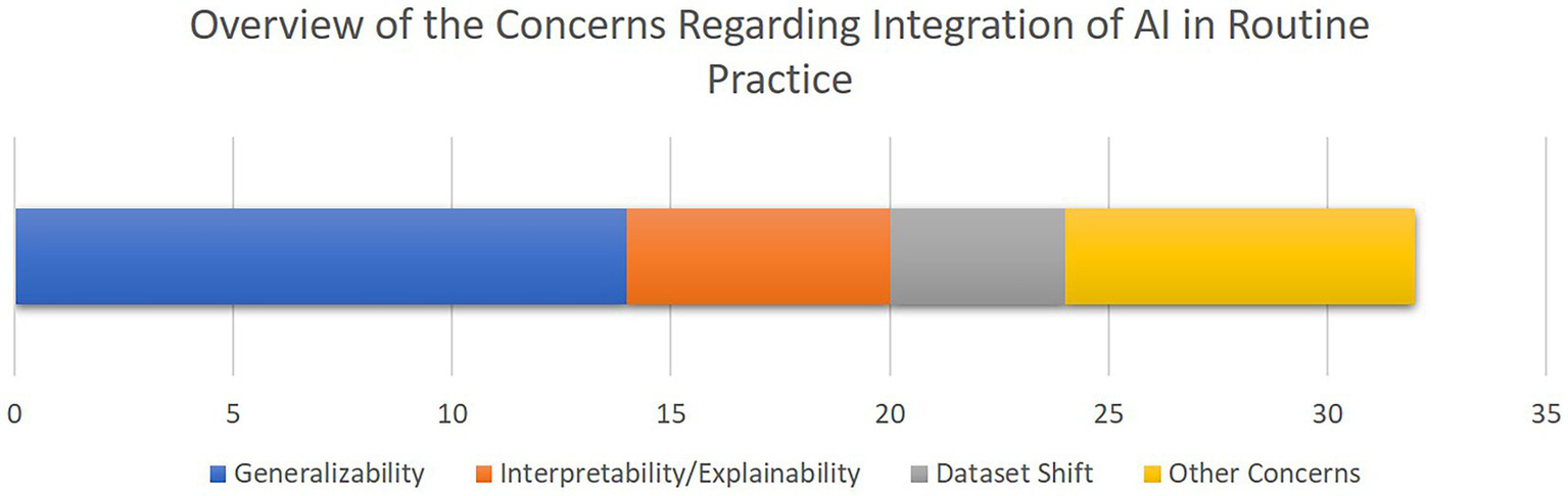 Despite the large body of evidence illustrating the promising relevance of AI methodologies in medical domains, there are some common challenges which limit the integration of AI-based methodologies in daily routines. For instance, trained classifiers may make biased predictions due to various sources of bias, such as gender bias, present in medical datasets (22, 23). Another challenge is the ‘black box’ nature of most of the modern deep and recurrent neural network models, which necessitates solutions to address explainability of these methods when applied to medical domains (24). Furthermore, ensuring consistency between the characteristics of open access data sets used for training and real clinical data is crucial for the successful integration of AI in intensive care routine practice (25). We aimed to draw attention to the limitations stemming from bias, interpretability, and data set shift issues, which expose a gap in the integration of AI in clinical decision making. This gap is mostly caused by medical staff’s lack of trust in AI.