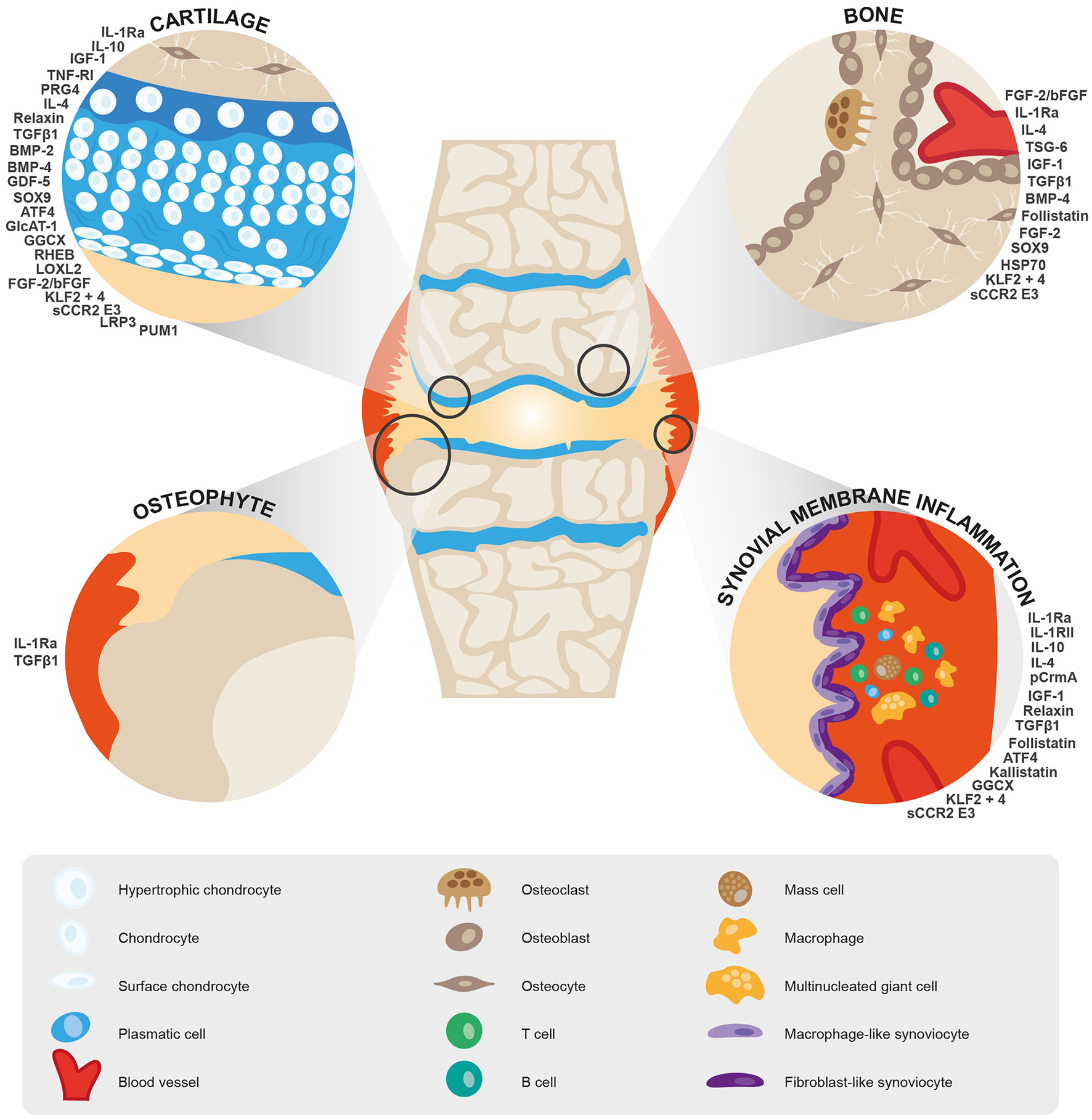Uebelhoer M, Lambert C, Grisart J, Guse K, Plutizki S and Henrotin Y (2023) Interleukins, growth factors, and transcription factors are key targets for gene therapy in osteoarthritis: A scoping review. Front. Med. 10:1148623. doi: 10.3389/fmed.2023.1148623