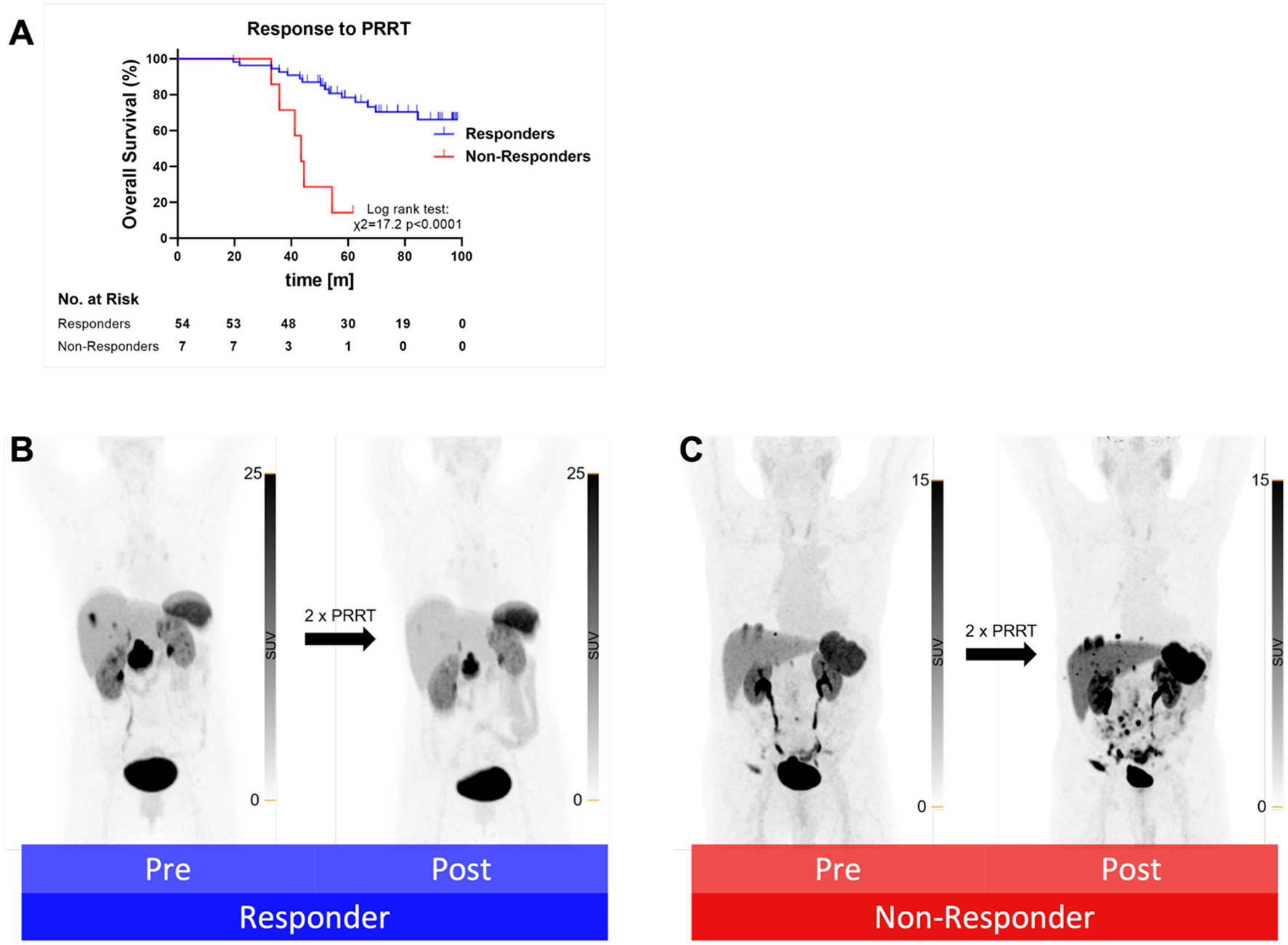 Measuring sufficient SSTR expression by pre therapeutic PET or SPECT imaging is an important prerequisite for selecting patients for PRRT. Although adequate SSTR expression has been measured, insufficient response to PRRT can, however, occur at a rate that has been estimated between 15 and 30%; moreover, there are no established biomarkers for the prediction of long-term response and survival (19, 20).