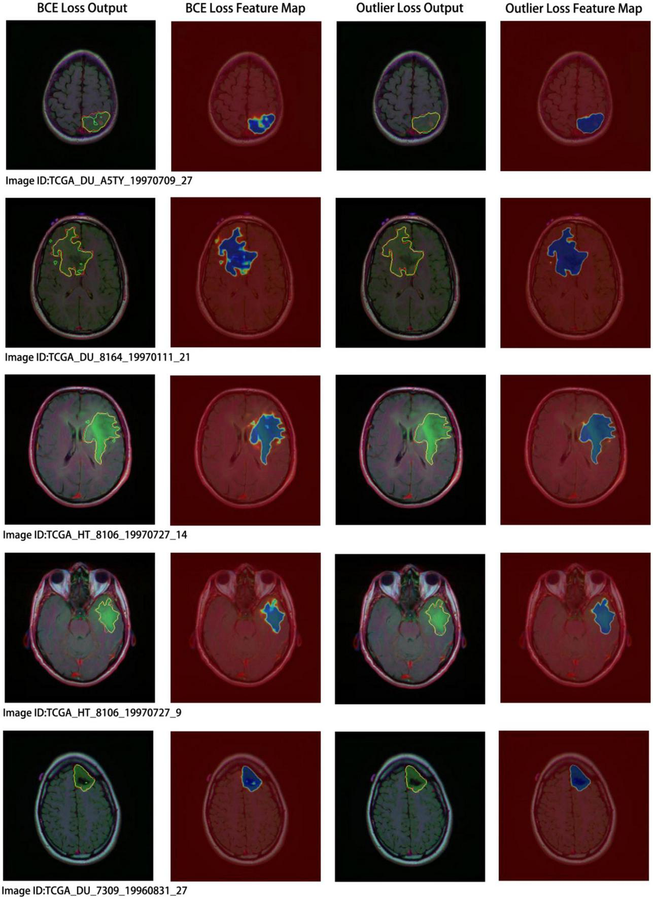The outlier-region loss function is calculated based on essentially stable prediction results and assigns higher loss values upon detection of the small number of anomalous outlier regions. Thus, this function is more suited for use in combination with the conventional loss function in a weighted manner, with the conventional loss function dominating in the early stage of training. and the weights of the outlier-region loss function gradually being increased in the later stage once basic stability has been achieved.