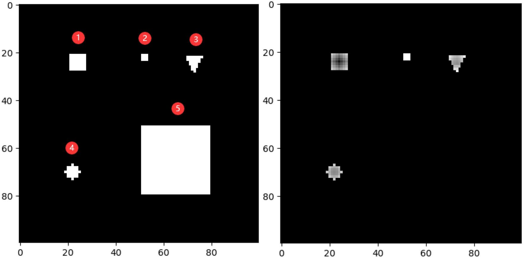 where the input X is an n × n prediction mask matrix, the sigmoid function is used for processing, X ∈ (0,1), the output has the same shape as the input, i and j are hyperparameters, and j > i. The white and black point densities can be defined as