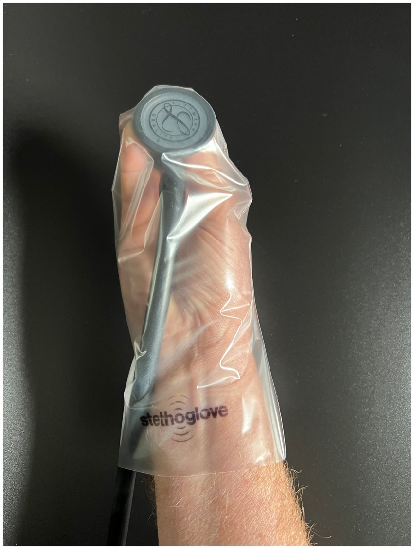 Recently, a new non-sterile, single-use hygienic cover for stethoscopes (Stethoglove®, Stethoglove GmbH, Hamburg, Germany) has been developed. It is impermeable for microorganisms thereby preventing stethoscope-mediated patient-to-patient transmission of pathogens and preserves the acoustic quality of auscultations. The SC can be easily pulled over the stethoscope’s bell, part of the tube(s), while being held in the hand of the user to also shield the operating hand during auscultation.
