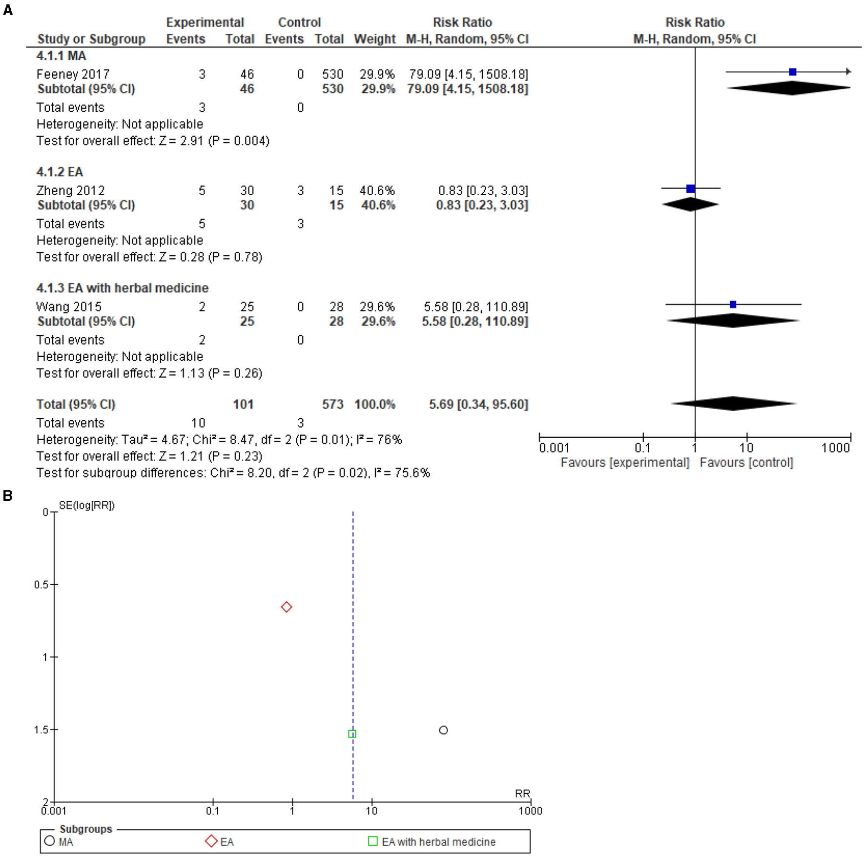 Meta-analyses were performed according to the following measurements: minor AEs following acupuncture, adverse reactions, a combination of AEs or adverse reactions, ICU stay, and overall safety of the intervention (including zero events). Meta-analyses were also conducted on the 28-day mortality and combined mortality (with respect to both hospital and 28-day mortality follow-ups).