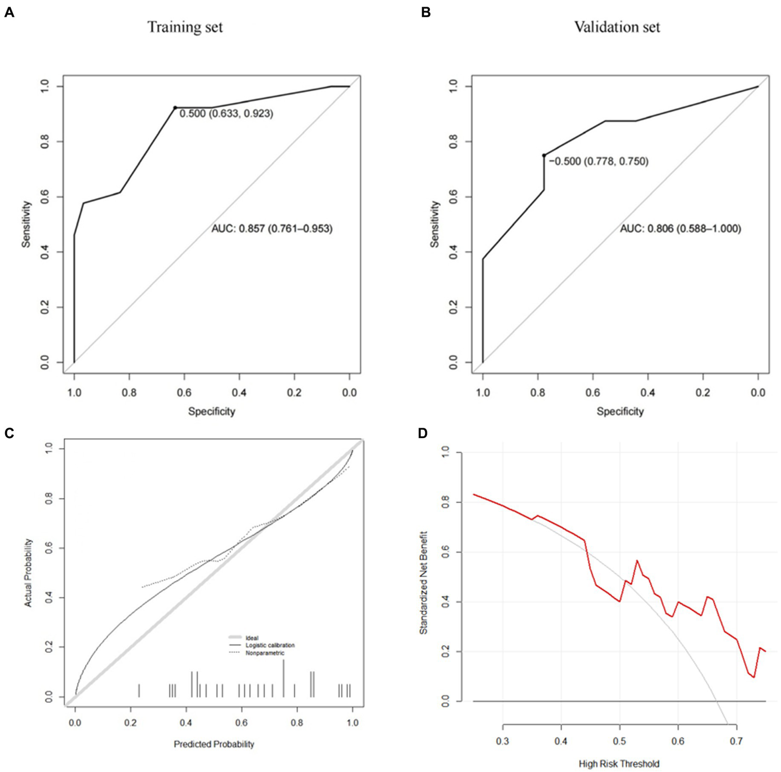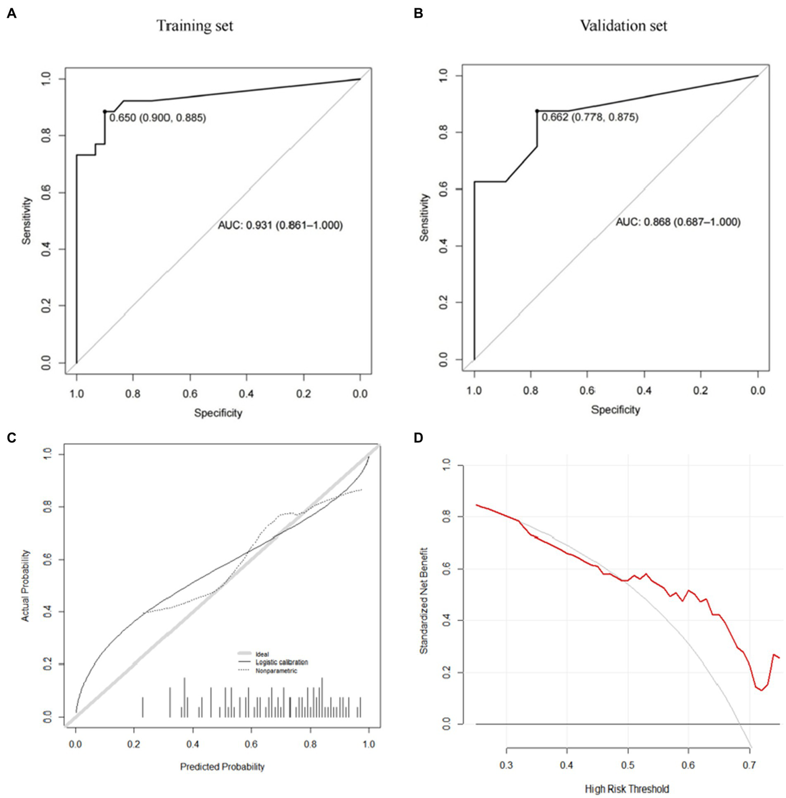 CSS (A: training set, B: validation set, C: calibration curve, D: decision curve analysis).