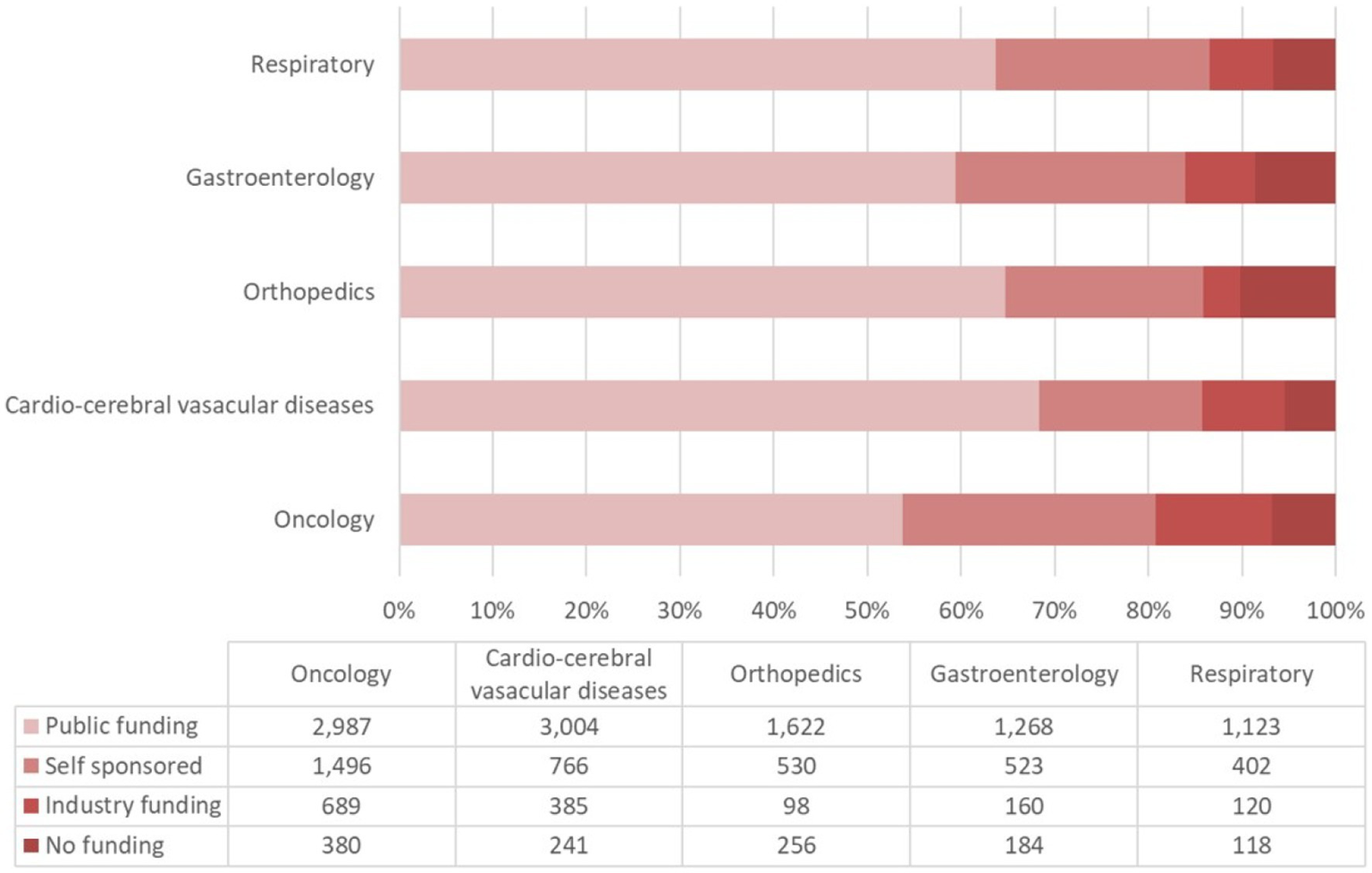 -Findings: In this descriptive research, clinical trials pertinent to neoplastic diseases occupied the largest portion of registrations. Publicly funded trials accounted for a comparatively higher number than the trials funded by other sources. Research on oncological and cardiovascular diseases receives the highest share of national public funding for medical research when compared to other types of disease research.