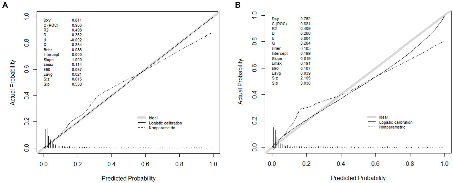 A total of 1,442 patients with GIB admitted to the ICU were screened (Figure 1). Of these, 251 died during hospitalization, resulting in an in-hospital mortality rate of 17.4%. Then 1,010 patients were randomly assigned to a training group and 432 to a validation group, in a ratio of 7:3. Table 1 shows the data on all patients. We can see a total of 745 (51.7%) patients with UGIB, including 530 (36.8%) with non-variceal upper gastrointestinal bleeding (NVUGIB) and 215 (14.9%) with variceal upper gastrointestinal bleeding (VUGIB) 0.252 (17.5%) patients with LGIB, and a total of 445 (30.9%) with bleeding in an unclear site; in terms of in-hospital mortality, NVUGIB, VUGIB, LGIB, and unclear site bleeding were 58 (4.0%), 56 (3.9%), 19 (1.3%), and 118 (8.2%), respectively.