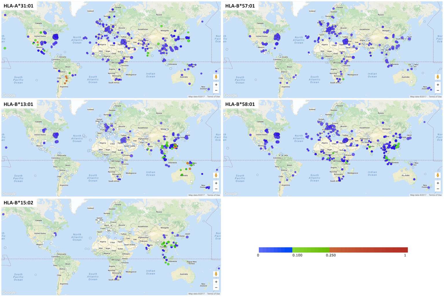 Clinical implementation and assessment for pharmacogenetic risk markers before initiating drugs suspected of causing severe cutaneous adverse reactions (SCARs) has added significantly to prevention and diagnosis. Several medical centers worldwide have implemented clinical pharmacogenetic services with an aim to prevent SCARs, including SJS/TEN, and have reported on this experience (13–18). The preliminary results of large-scale prospective pharmacogenetic screenings conducted in Southeast Asia have substantially reduced rates of SCARs (19). HLA-B*15:02 genotyping prior to carbamazepine administration was found to be a cost-effective means to preventing carbamazepine-induced SJS/TEN. This has been shown in several, but not all, Asian countries (20), like Southeast and South Asian countries where the population has a higher HLA-B*15:02 allele frequency (5–20%), and a strong association between HLA-B*15:02 and SJS/TEN (21). The cost of HLA-B*15:02 screening is paid by national health insurance (Figure 2) in Hong Kong, Taiwan, Singapore (Chinese and Malay ethnicity), Thailand, and China (20). Caveats have been raised to the fact that the B75 serotype of HLA (which includes not only HLA-B*15:02 but HLA-B*15:21, HLA-B*15:08, HLA-B*15:11, HLA-B*15:30 and HLA-B*15:3) has been associated with carbamazepine SJS/TEN, however, the cost-effective single allele assays have been largely set-up to detect only HLA-B*15:02. Reports of carbamazepine SJS/TEN in patients carrying these other B75 HLA serotypes have been a primary reason in Southeast Asian countries for HLA-B*15:02 not detecting all patients at risk of developing carbamazepine SJS/TEN (22–25). Not all HLA alleles are associated with multiple clinical phenotypes of SCAR. For instance, HLA-B*58:01 is associated with both allopurinol SJS/TEN and drug reaction with eosinophilia and systemic symptoms/drug-induced hypersensitivity syndrome (DRESS/DIHS), however, HLA-B*15:02 is only associated with carbamazepine SJS/TEN. Therefore, even in Southeast Asia if an individual was negative for HLA-B*15:02 and other B75 HLA serotypes, they would still be at risk for carbamazepine DRESS/DIHS (Table 2) (26, 27) which has been associated with HLA-A*31:01.