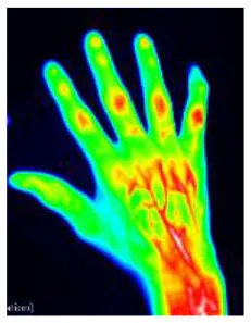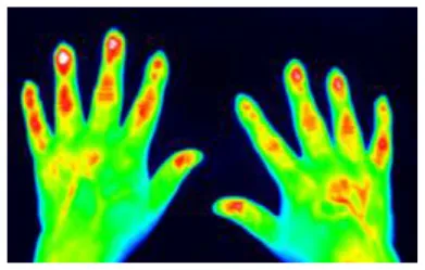 Successful treatment of rheumatic diseases affecting the hands depends on an accurate and fast diagnosis in patients presenting with hand pain (1). Fluorescence optical imaging (FOI) has been used to study a number of rheumatic diseases, including, for example, rheumatoid arthritis (RA) (2–4), osteoarthritis (OA) (4, 5), connective tissue diseases (CTD) (6, 7), and others (8, 9). The results of FOI for the diagnosis of rheumatic diseases have been compared to MRI [3, 5, 9] and ultrasonography (2–5, 9, 10) with good agreement. Inflammatory changes in the microcirculation can be visualized using FOI. Until recently, the primary focus has been on signal enhancement in the joint regions of both hands and wrists (8). However, FOI examinations display more, less commonly used image features that may also be of diagnostic value. These include spots on the hand, distensions from the nail bed, the occurrence of Raynaud's syndrome in CTD, and others (6, 10). Eighteen different features found in FOI examinations have recently been presented (11).