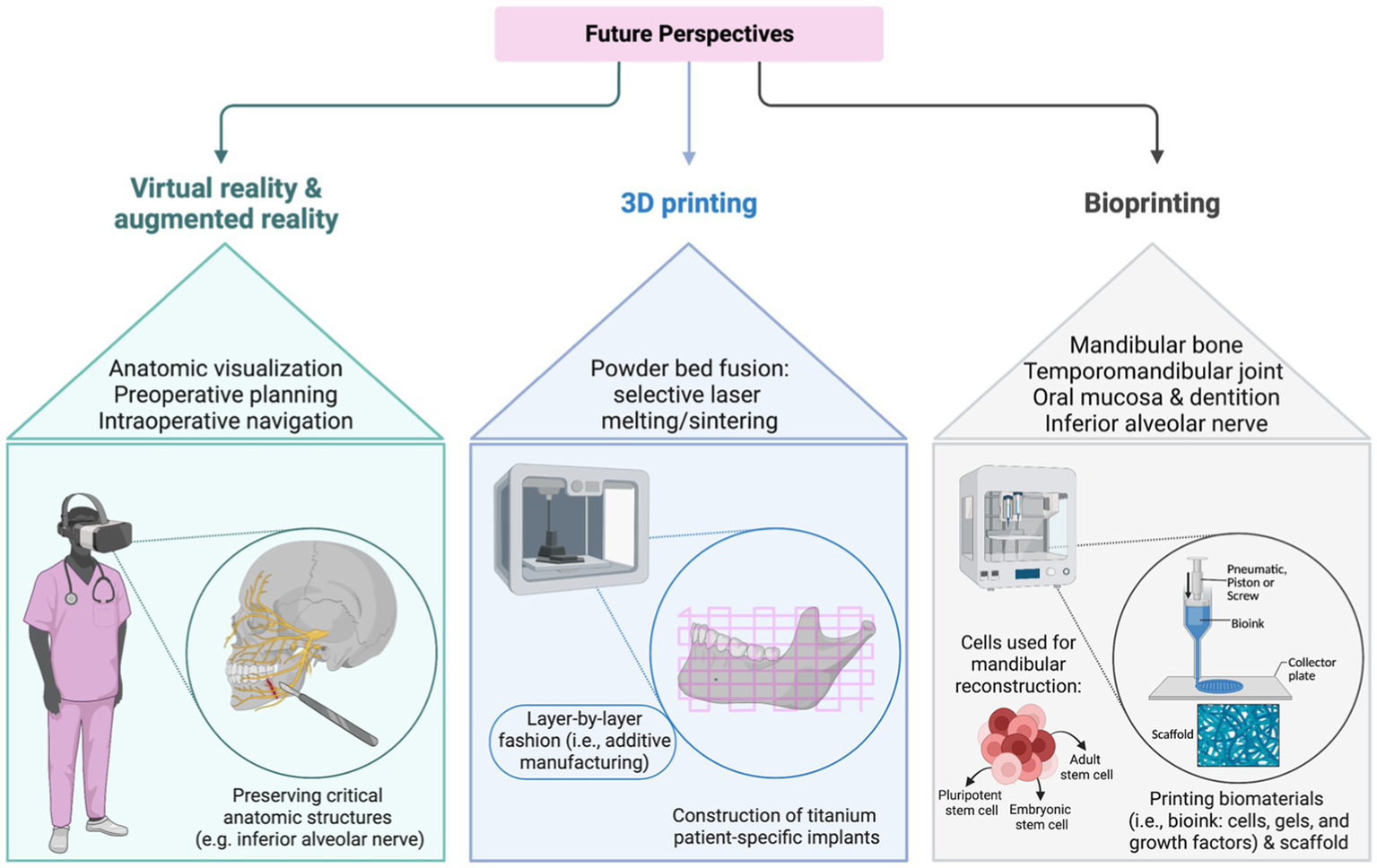 Future perspectives of virtual /augmented reality, three-dimensional (3D), and bioprinting.
