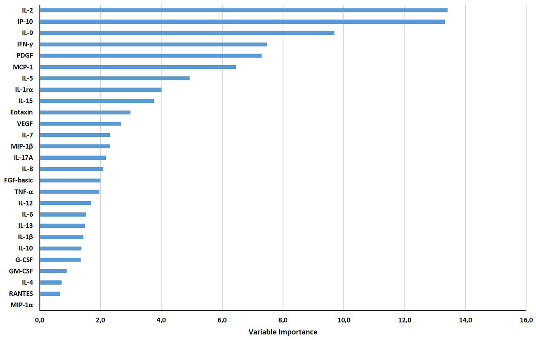 Multiplex immune assay was performed on plasma harvested from TB1 and TB2 tubes. We used Bio-Plex Pro Human Cytokine 27-plex Assay panel and the MagPix system (all from Bio-Rad, Hercules, CA, USA), according to manufacturer's instructions to evaluate cytokines, chemokines, and growth factors [IL-1β, IL-1RA, IL-2, IL-4, IL-5, IL-6, IL-7, IL-8, IL-9, IL-10, IL-12p70, IL-13, IL-15, IL-17A, eotaxin, basic fibroblast growth factor (FGF), granulocyte colony-stimulating factor (G-CSF), granulocyte–macrophage colony-stimulating factor (GM-CSF), IFN-γ, IP-10, monocyte chemoattractant protein-1 (MCP-1), macrophage inflammatory protein (MIP)-1α, MIP-1β, platelet-derived growth factor (PDGF), RANTES (regulated on activation, normal T cell expressed and secreted), tumor necrosis factor-alpha (TNF)-α, and vascular endothelial growth factor (VEGF)]. Bio-Plex Manager software was used to generate raw data. All the values below the detection range were set as zero, and values above the detection range were converted to the highest value of the standard curve. Values of the unstimulated controls were subtracted from each condition. Samples with acquired bead count < 50 were excluded from the final analysis.