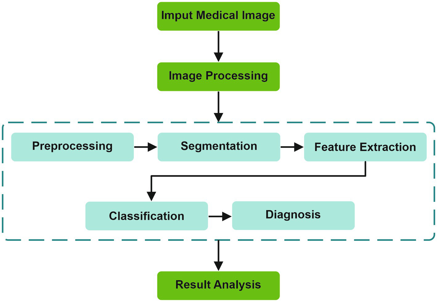 The fundamental stages of an AI algorithm are illustrated in Figure 2. From the image acquisition to the last stage of result analysis, image processing is essential, undergoing multiple stages before reaching a diagnosis (22).