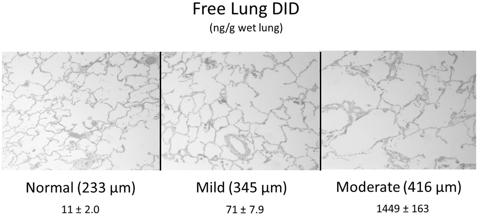 Pulmonary emphysema involves multiple pathogenic mechanisms such as excess elastase activity, oxidative stress, and alpha-1 antiprotease deficiency. The interaction of these various processes may lead to converging patterns of injury, including loss of elastin crosslinks, microscopic fragmentation of elastic fibers, and macroscopic rupture of alveolar walls. These events at different levels of scale are consistent with an emergent phenomenon, suggesting that effective treatment of pulmonary emphysema may depend on the use of therapeutic agents prior to a phase transition involving alveolar wall rupture. While no accepted method for accurately measuring the early stages of pulmonary emphysema is currently available, the use of free DID to detect initial changes in airspace size may permit timely therapeutic intervention that reduces the risk of respiratory failure.