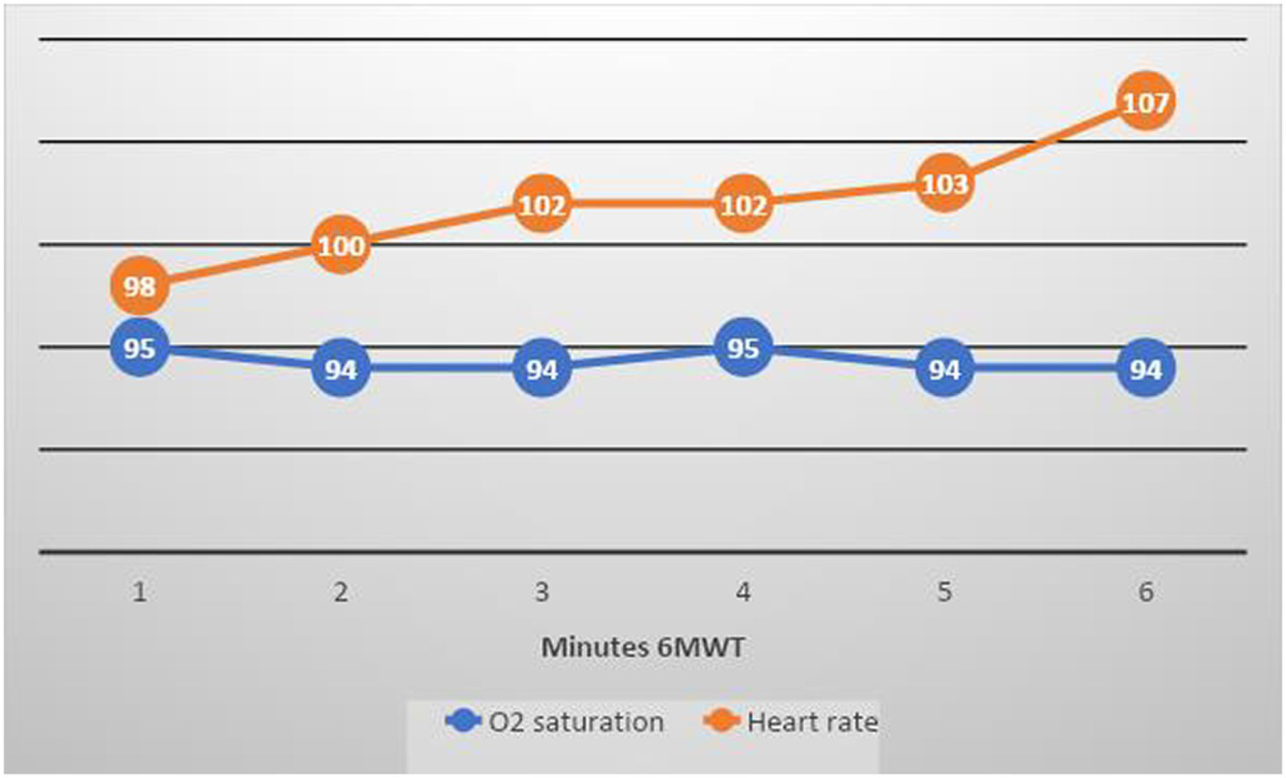 A 6 min walk test (6MWT) was performed at the 3- and 9 months visits (19). Pulse oximetry was recorded before and during the test. The BORG CR-10 scale and RPE6-20 scale were used to evaluate persisting symptoms at follow-up (20). The COPD assessment test (CAT) (21) and EQ-5D protocol (22) were used to validate residual symptoms and current health at the 3- and 9 months visits.