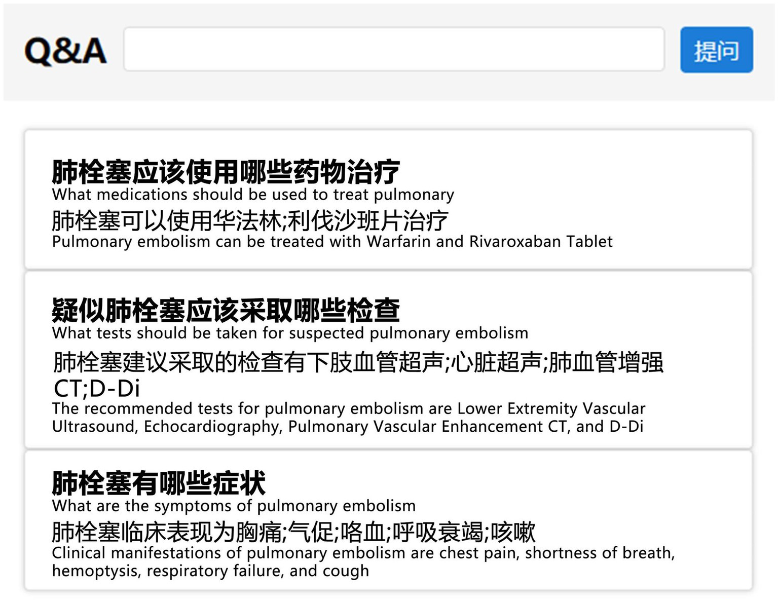 Electronic medical records document patients’ comprehensive medical activities in hospitals and serve as a rich source of specialized medical knowledge. Knowledge graphs can effectively integrate medical knowledge from electronic medical records, improve the organization and management of medical knowledge, and support physicians in diagnosis while popularizing relevant medical knowledge to patients (4–6), which offers an alternative approach to improving the timely diagnosis and treatment of VTE by non-specialists and raises patients’ awareness of VTE risks. However, electronic medical record text data typically exists in an unstructured format, making it hard to extract helpful knowledge for constructing a knowledge graph. Information Extraction (IE) is capable of identifying specific named entities and relations from unstructured electronic medical records closely related to the patients, yielding valuable medical knowledge (7–9). Nonetheless, traditional methods for extracting information from electronic medical records depend on factors such as specific domains, languages, and text styles, resulting in limited system portability. Furthermore, these methods make it difficult to enumerate all the rules that need to be modeled (10).