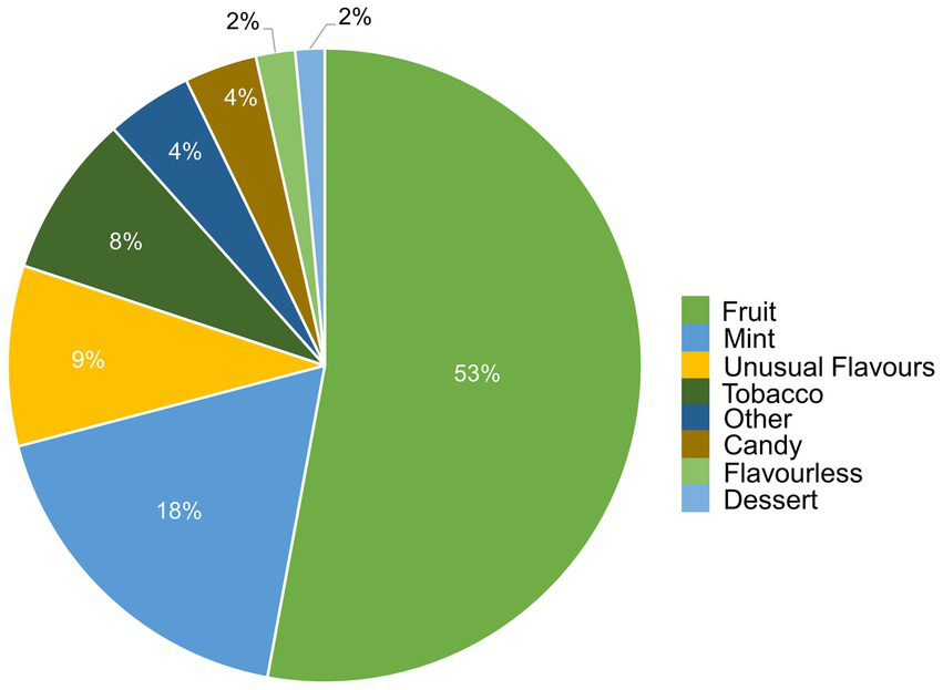 Distribution of vape flavors by preference. Figure was created using data from Canadian Tobacco and Nicotine Survey (CTNS) (14).