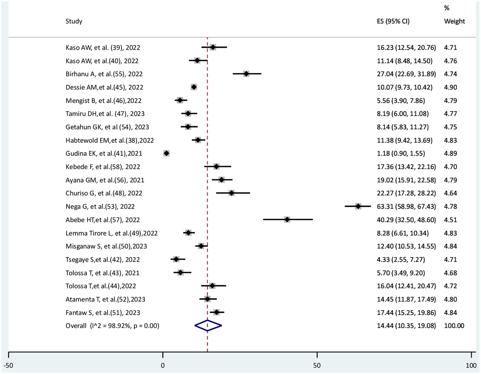 | 16 | Misganaw et al. (50), 2023 | SNNP | Retrospective | 2020–2021 | 1,032 | 128 | 12.4% | – |