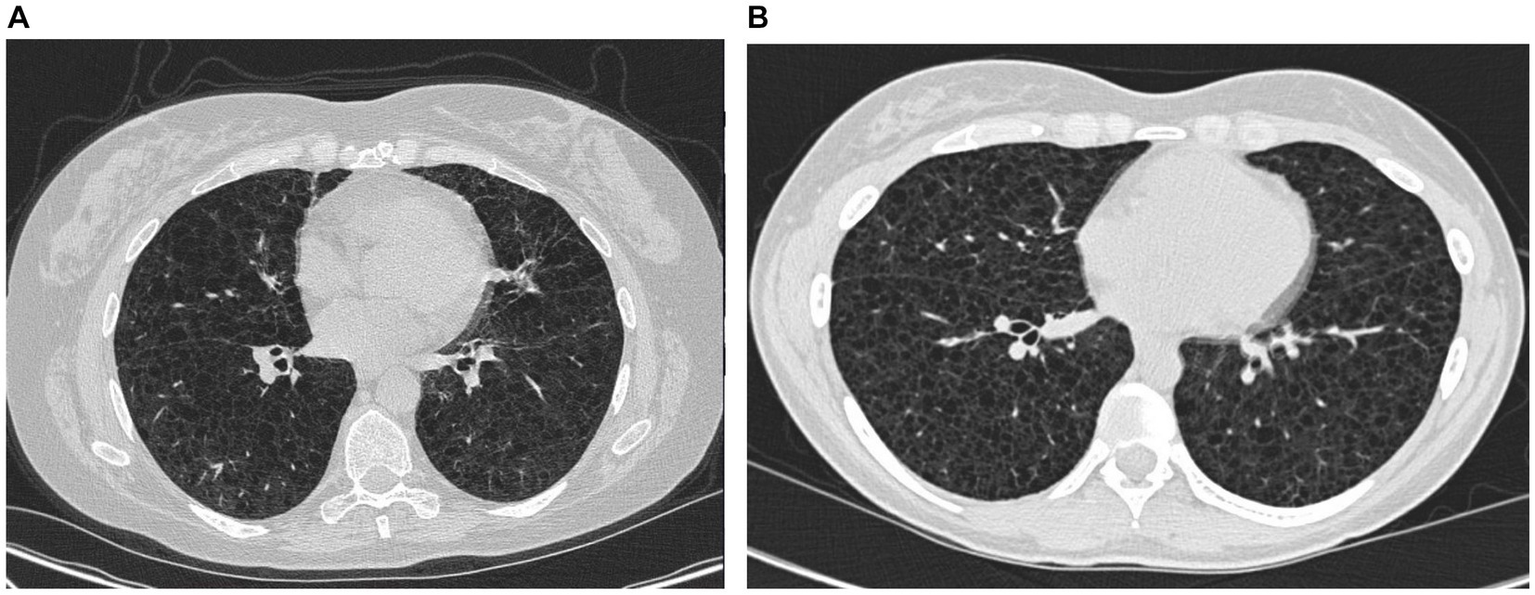 High-resolution computed tomography from case 1 (A) and case 2 (B).